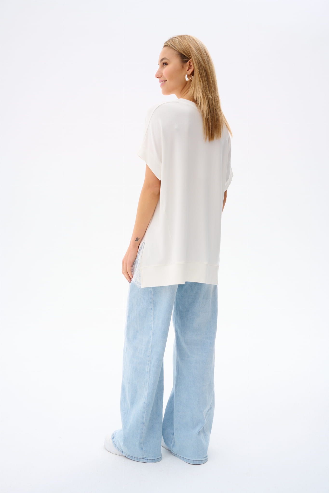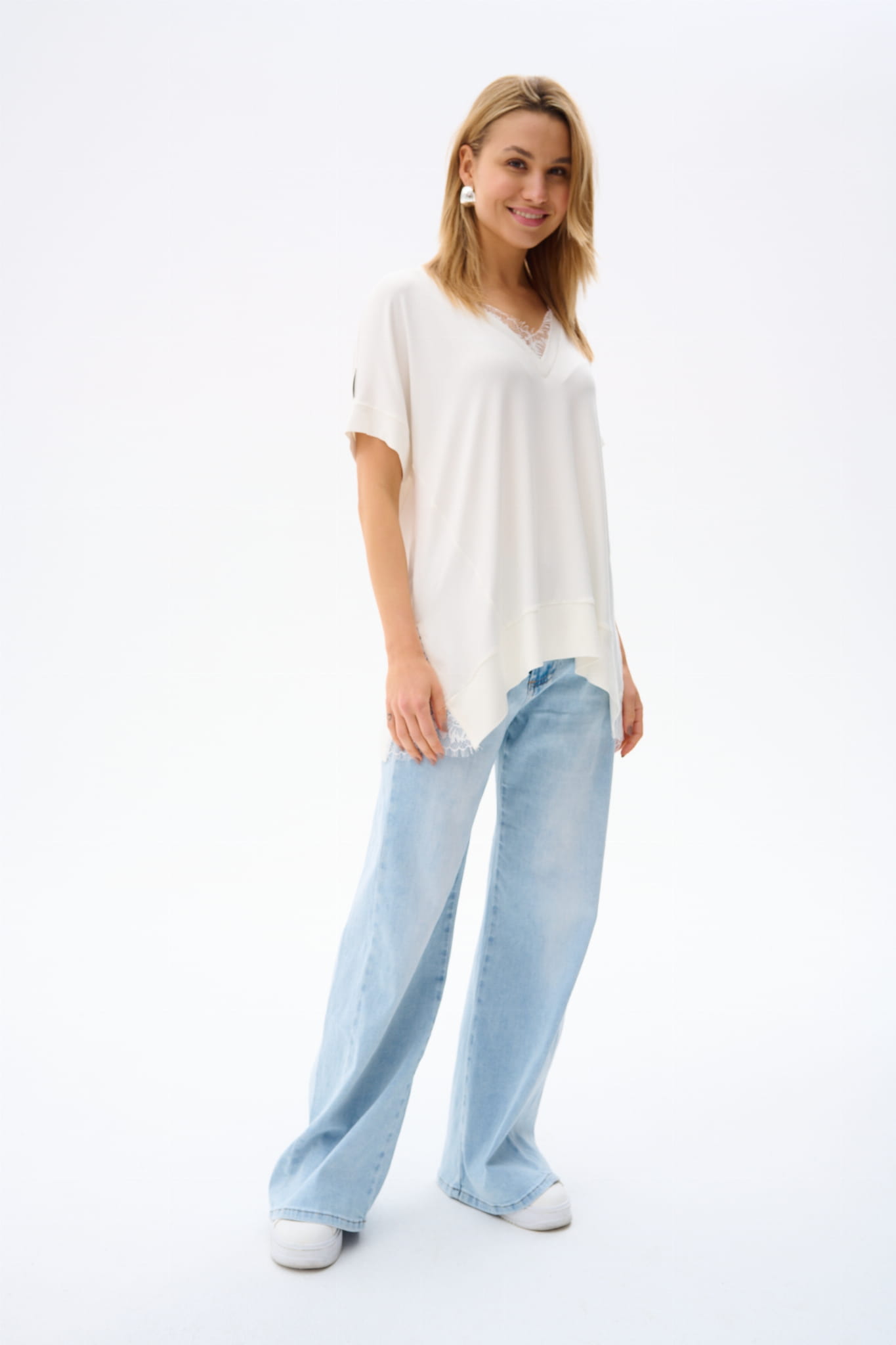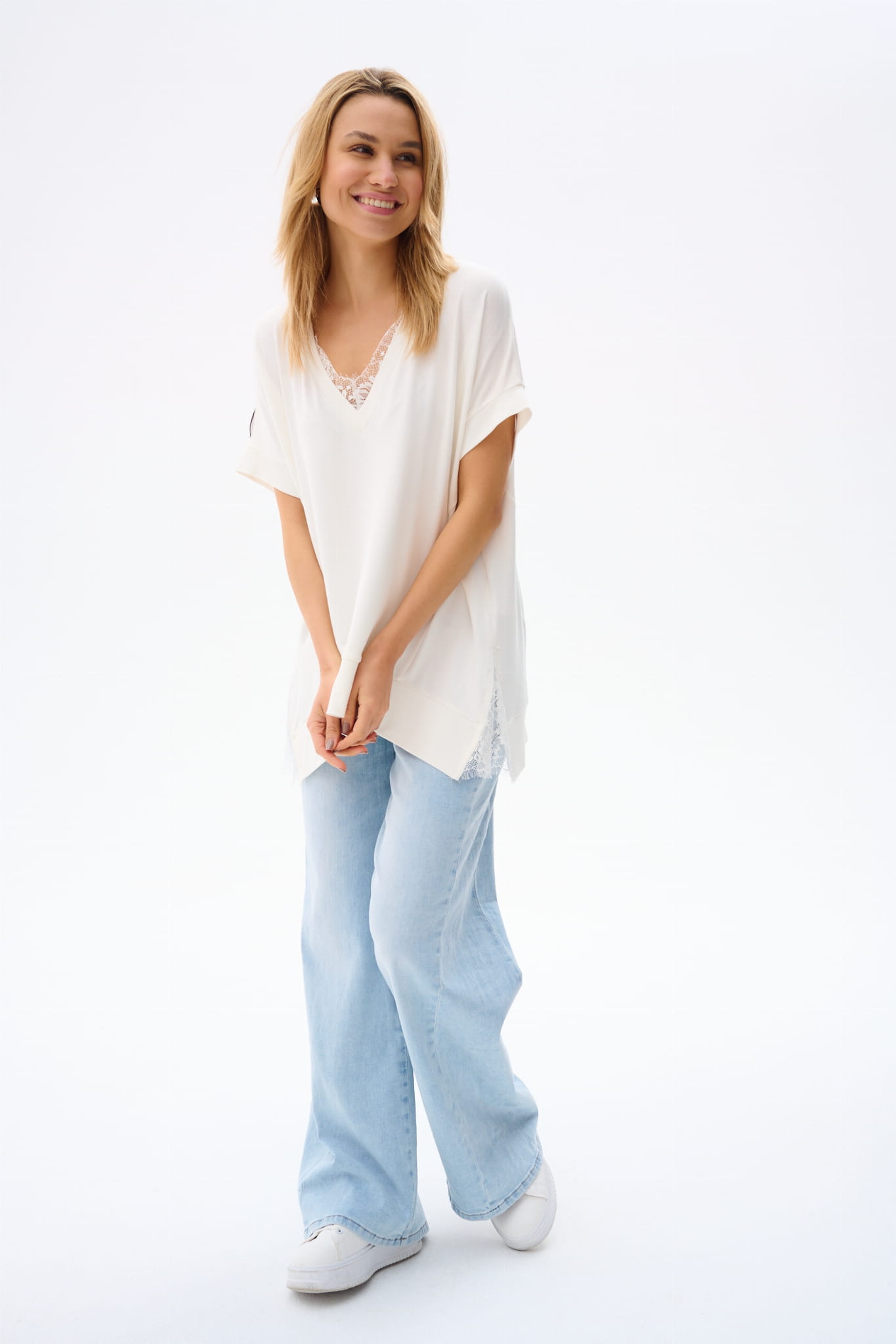 A te cięcia na dole bluzki po bokach skrywają w sobie mały sekret. Znajdziesz tam romantyczne, koronkowe wstawki. Gwarantujemy Ci, że pięknie się to razem wszystko prezentuje.