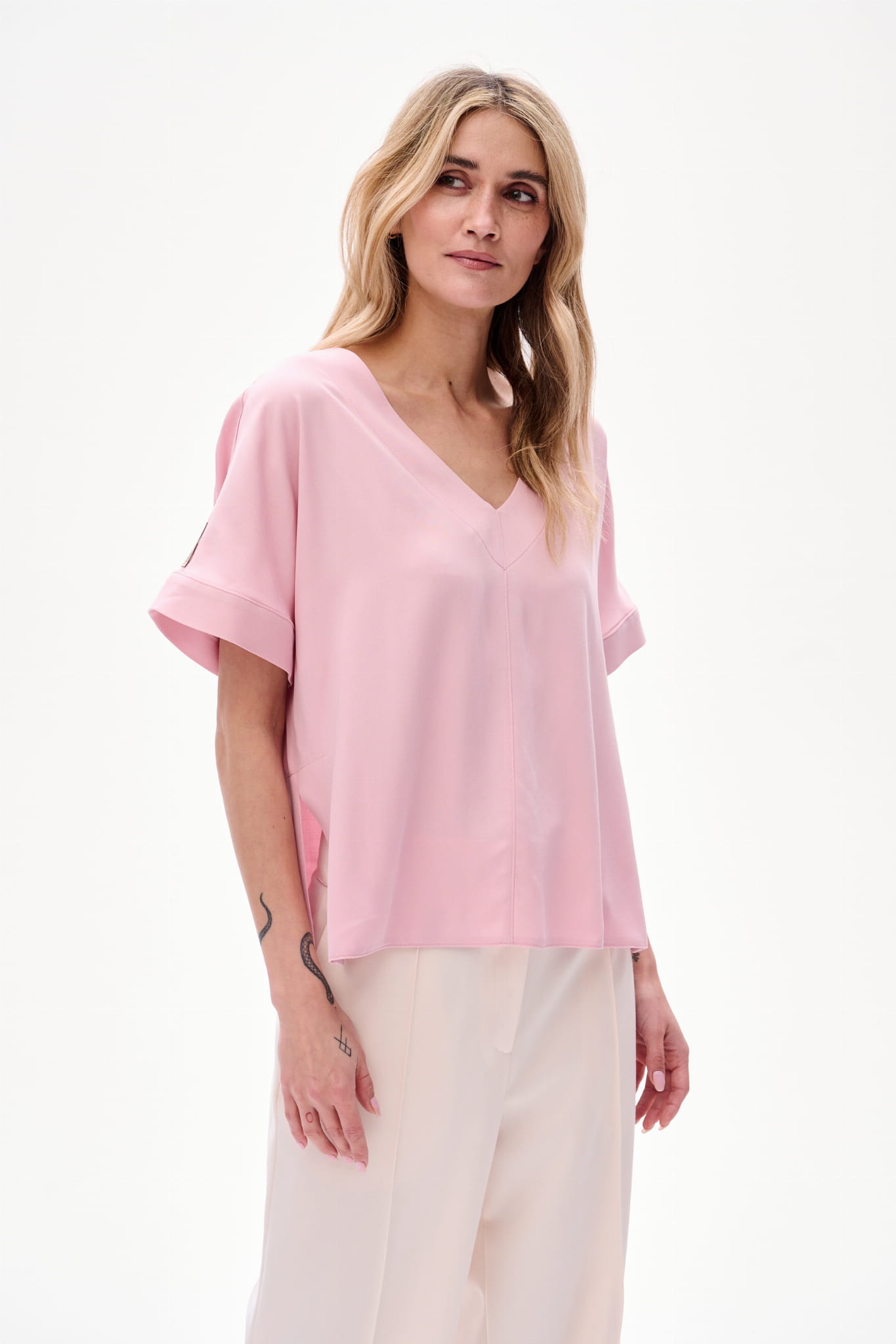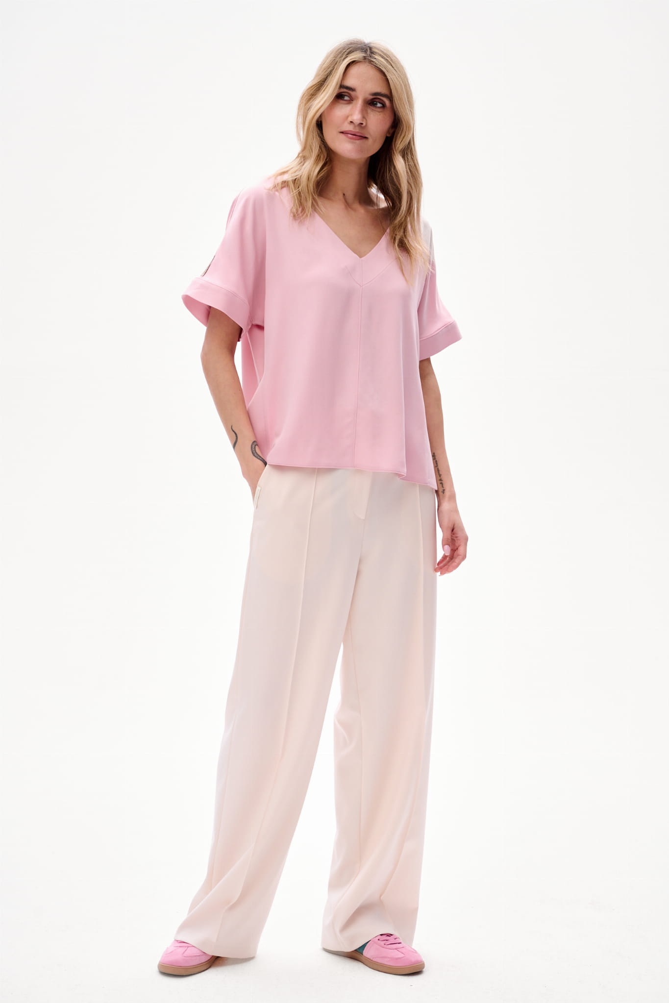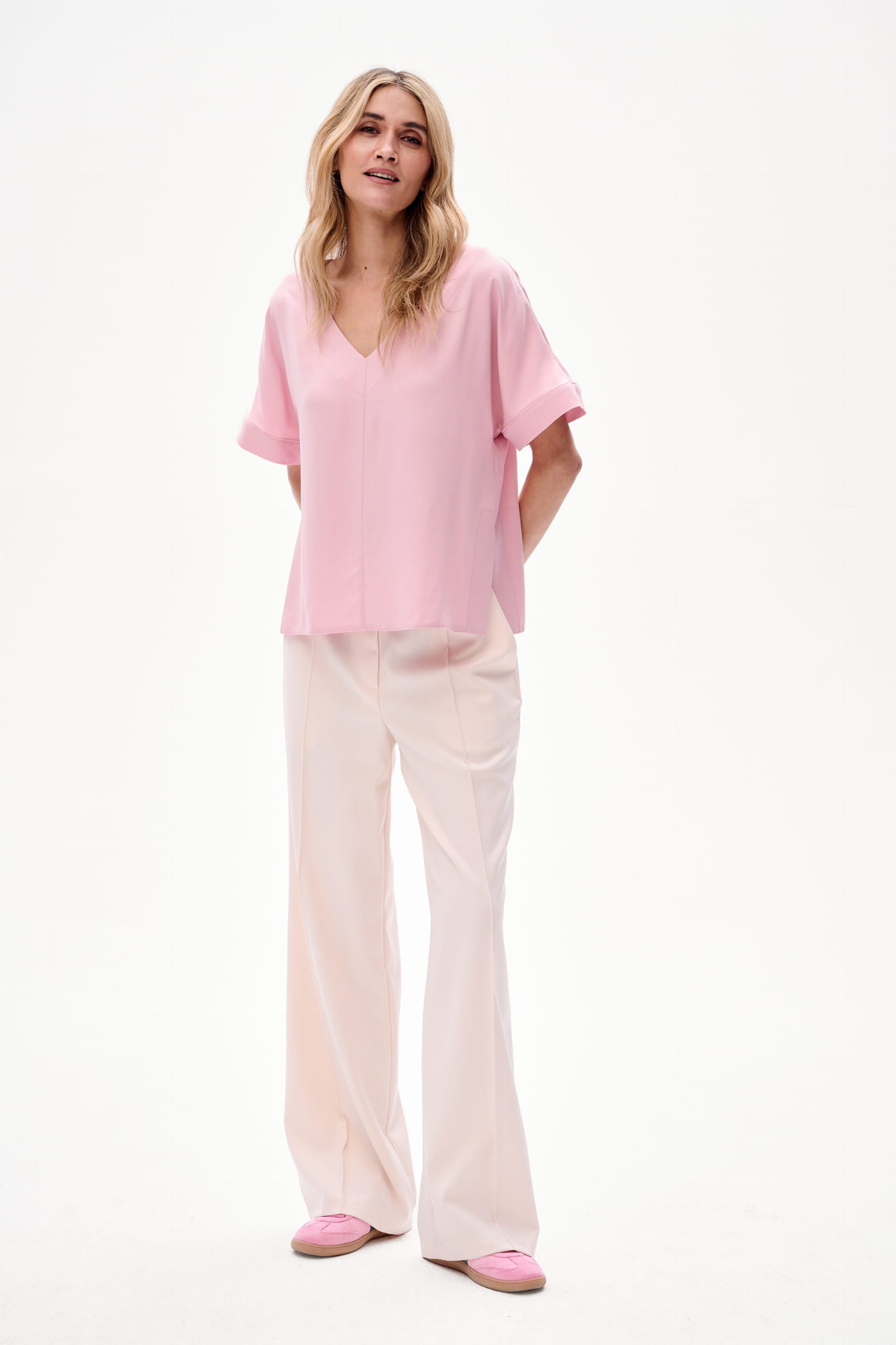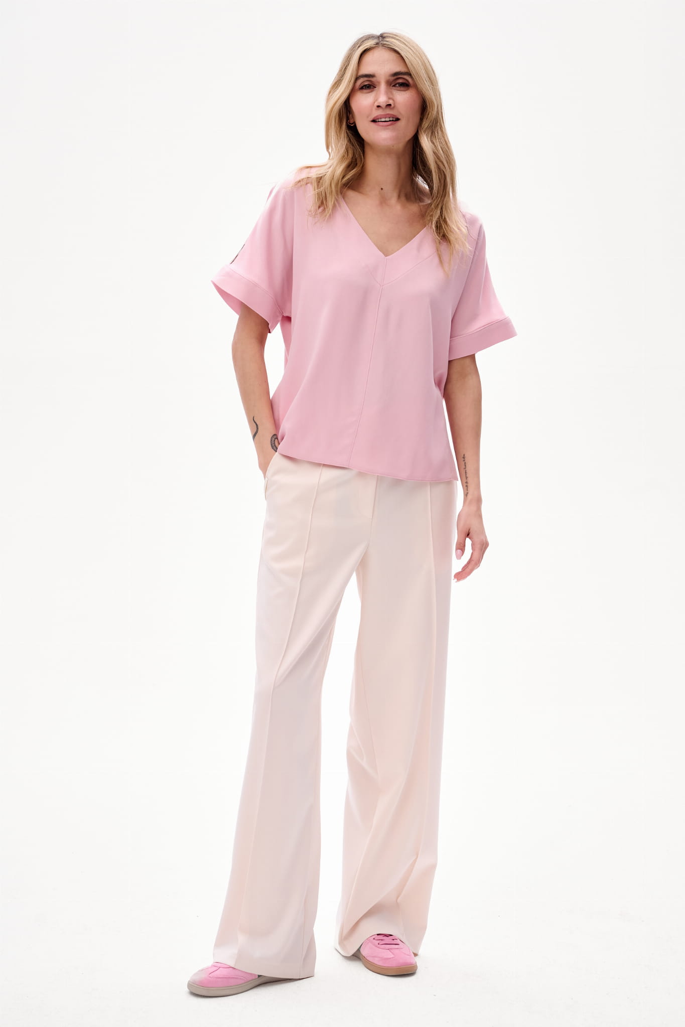 3. Jasna elegancja - jest wtedy, kiedy zakładasz wersję powder pink bluzki do spodni ENDORFINA.