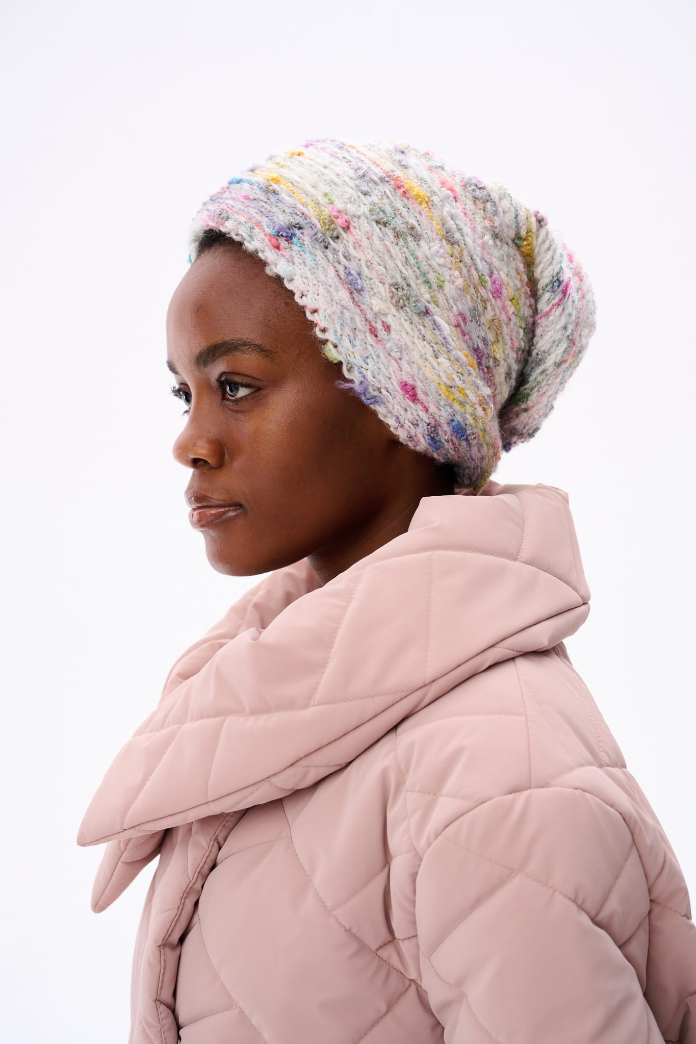 Czapka damska wykonana z miłej, ciepłej tkaniny. Elastyczna i wygodna, sprawdzi się na każdą pogodę. Idealna do wszystkich stylizacji Dostępna w różnych wariantach kolorystycznych. obwód czapki 44cm