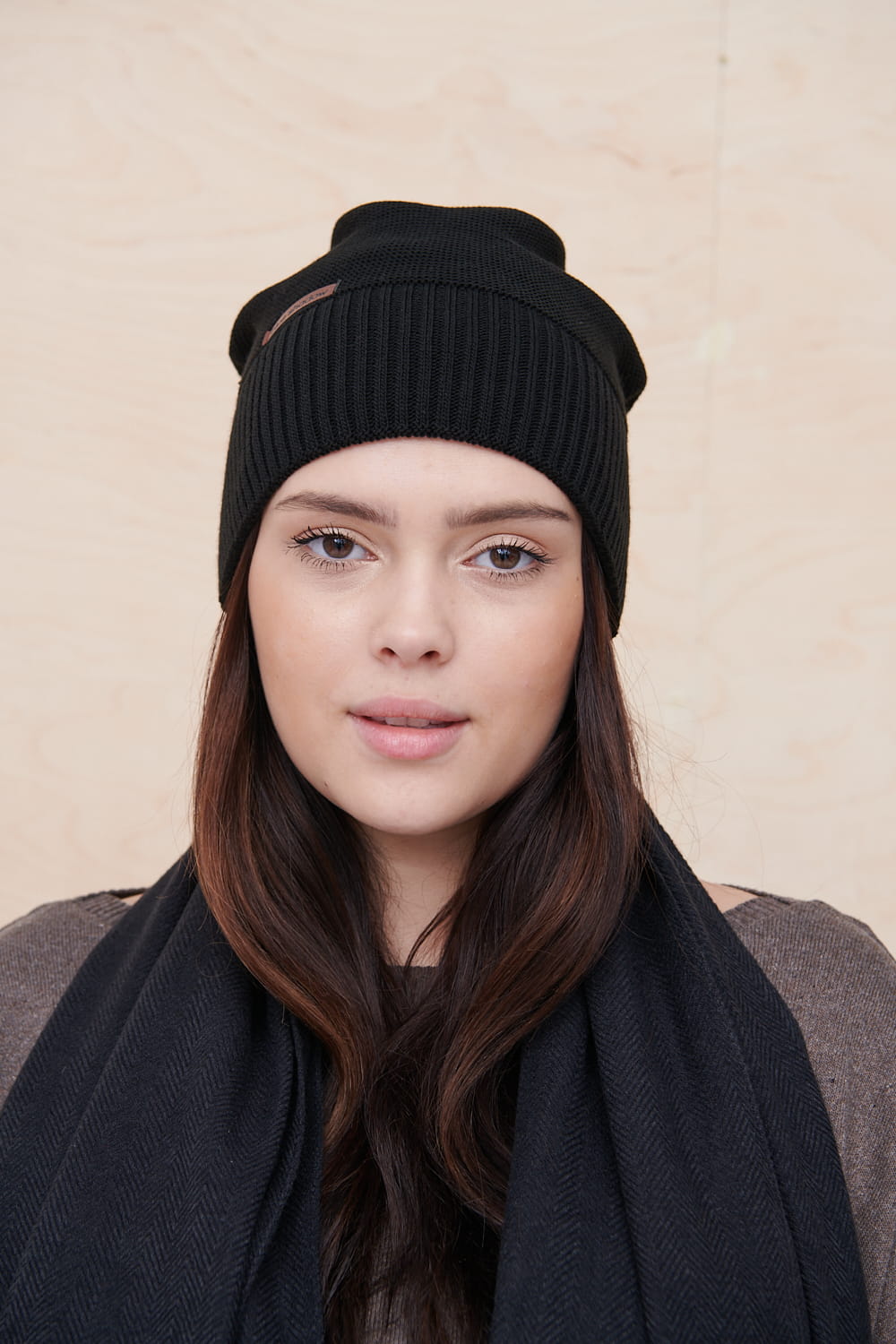 Czapka damska polskiej produkcji wykonana z miłej, ciepłej tkaniny.