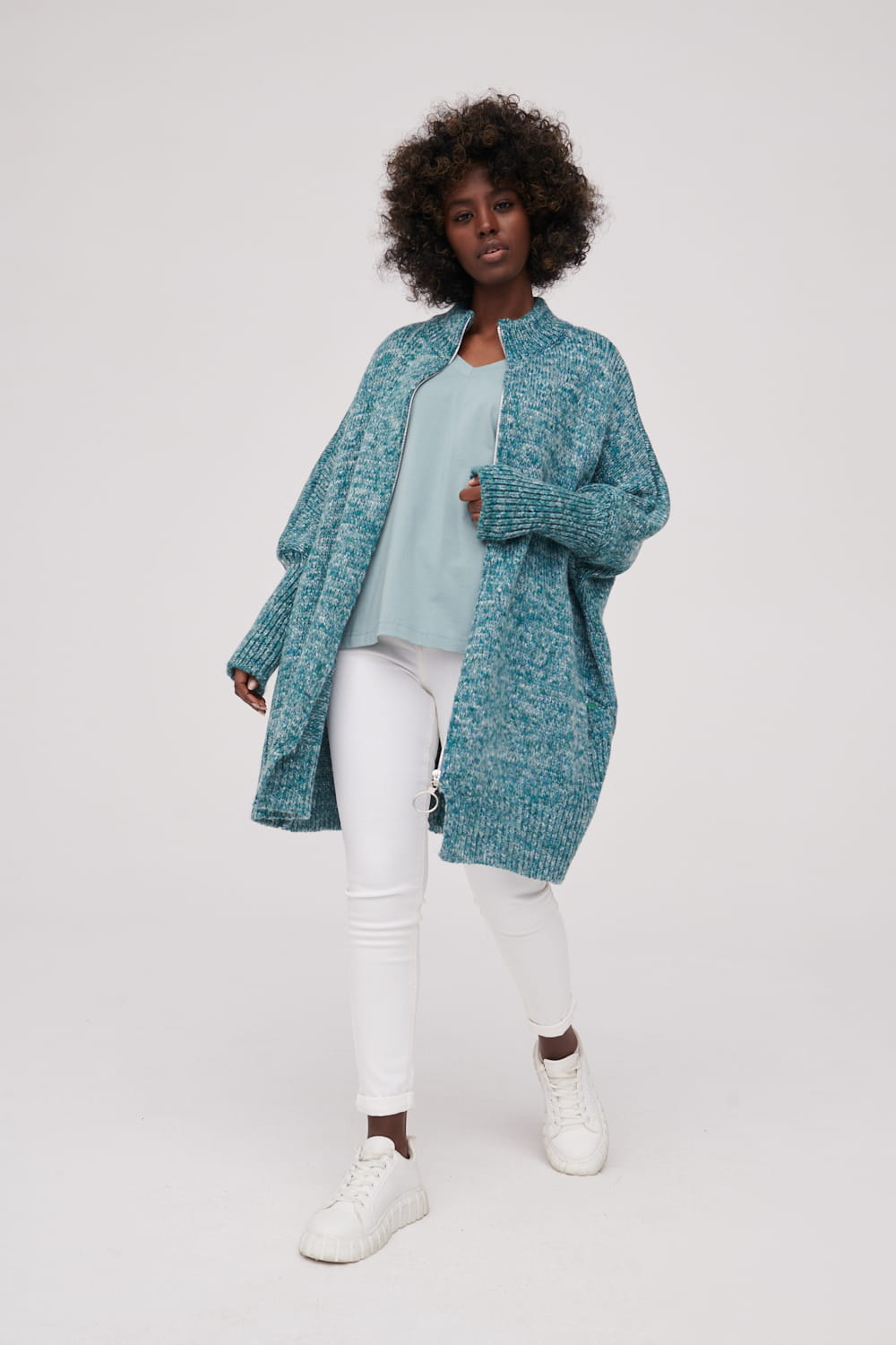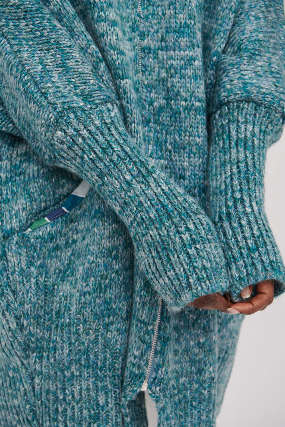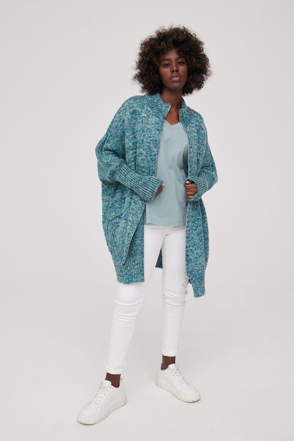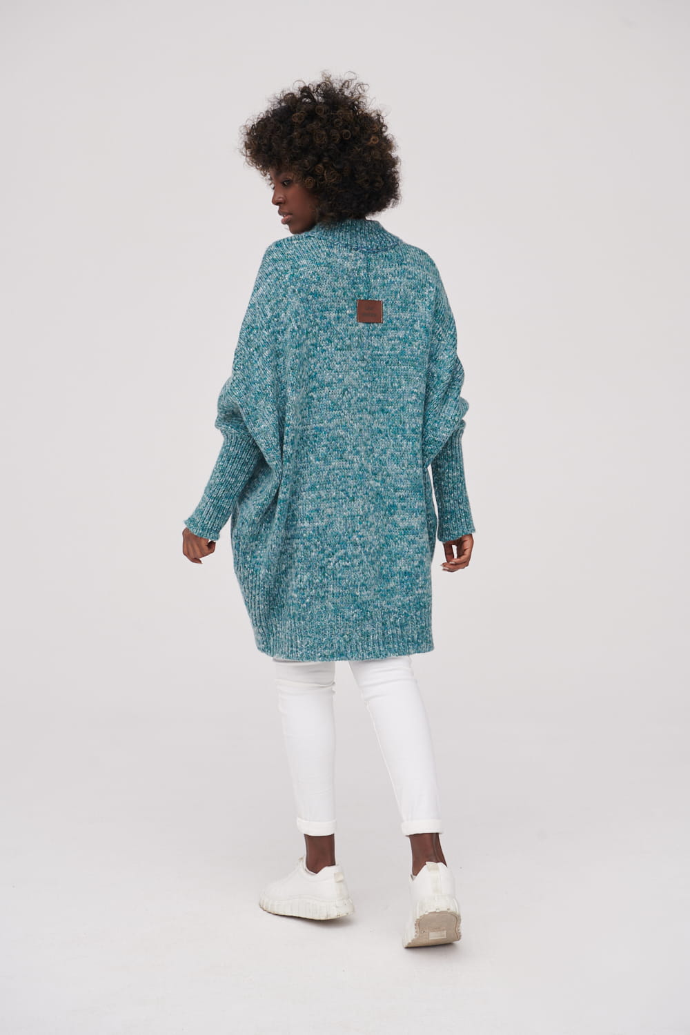 Oversizowy kardigan wykonany z przędzy.