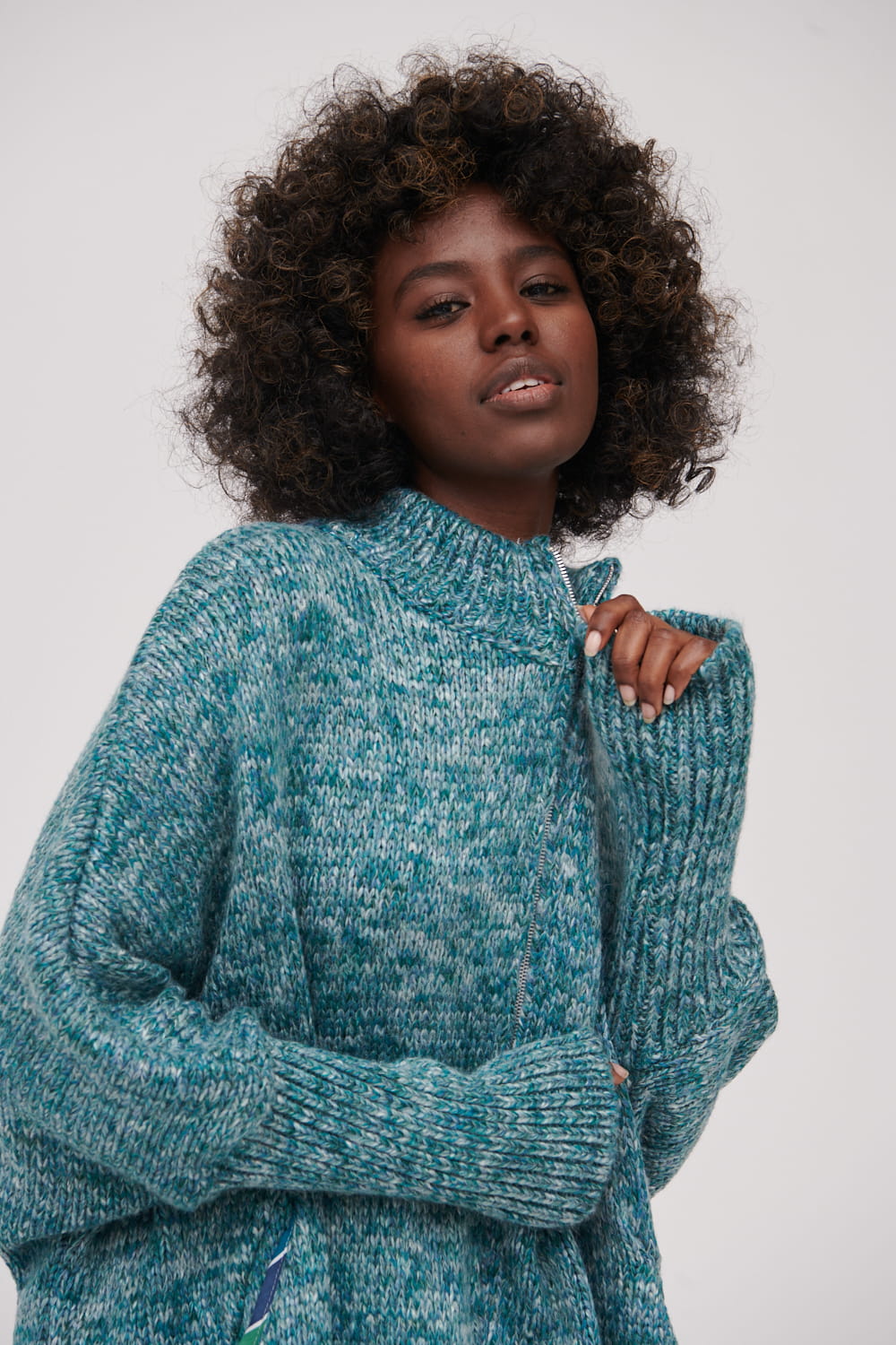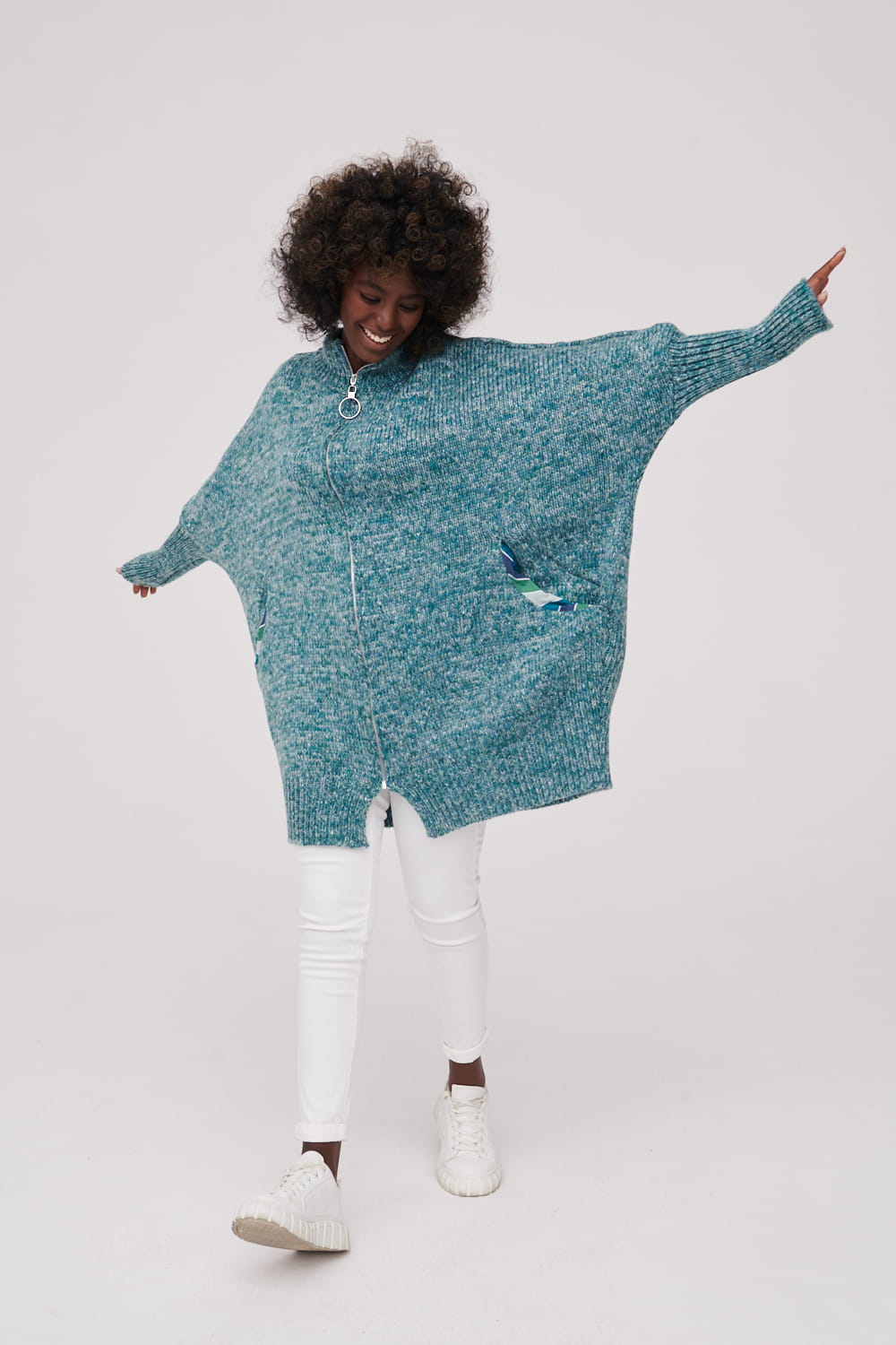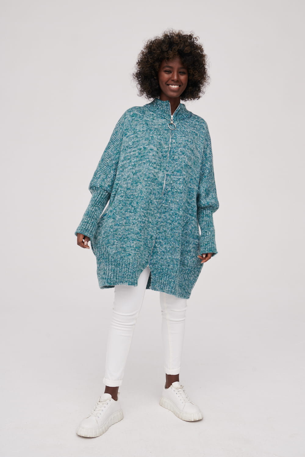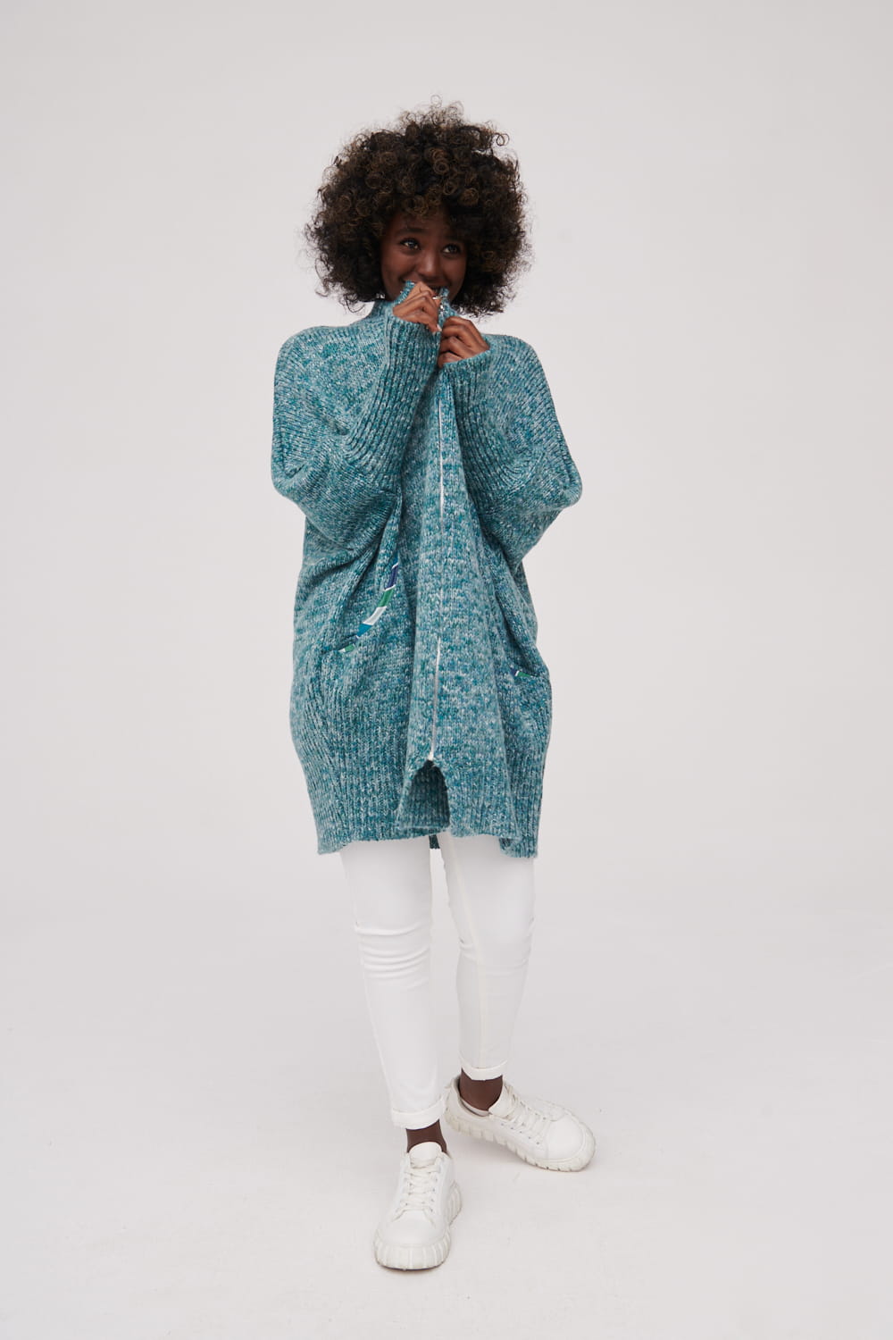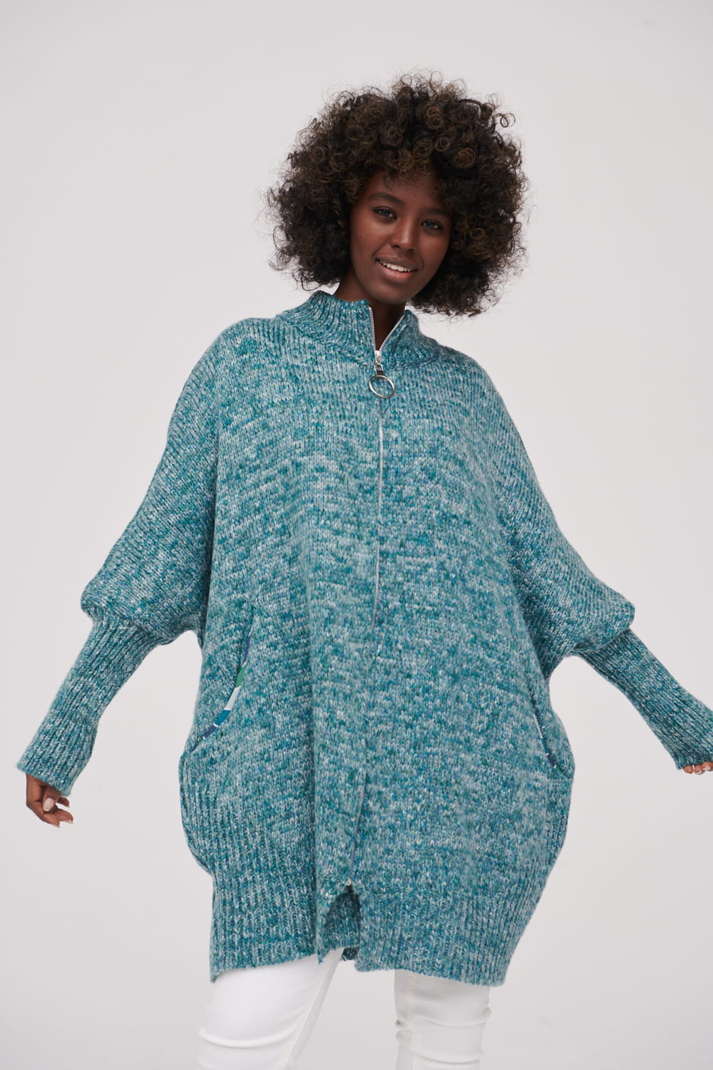 Oversizowy kardigan wykonany z przędzy.