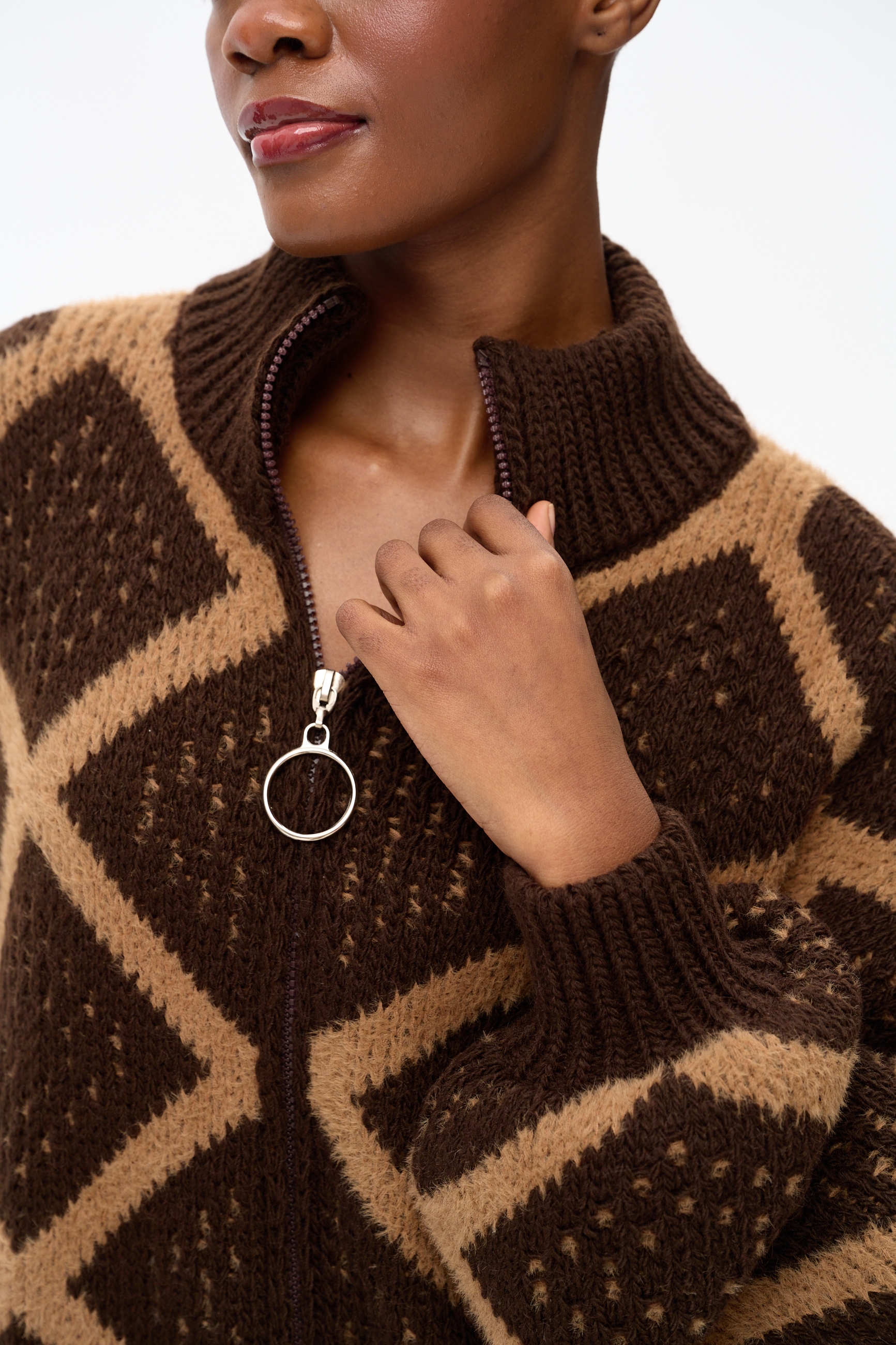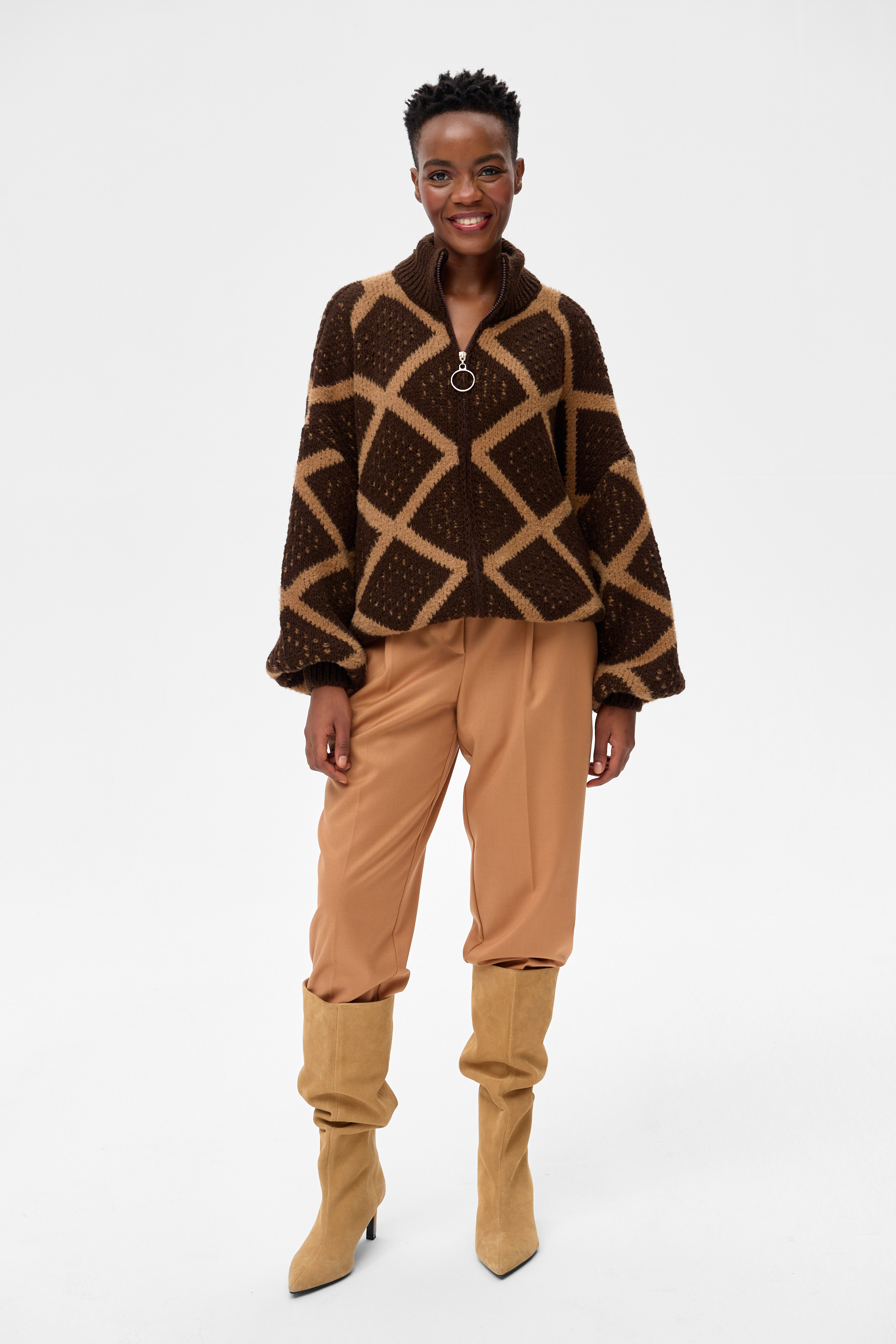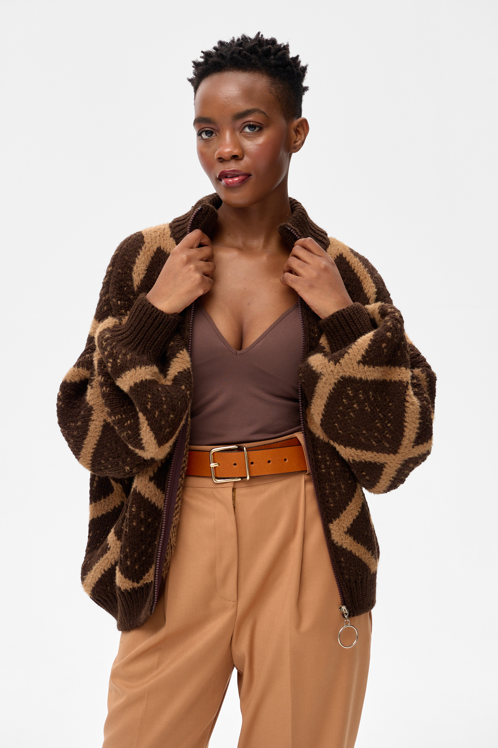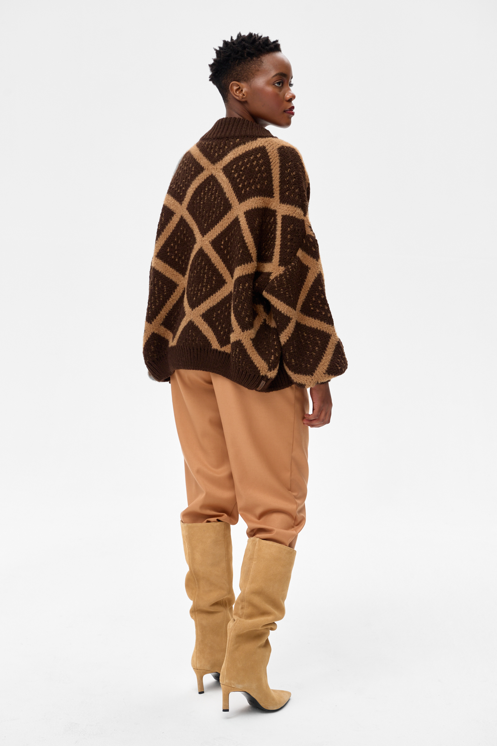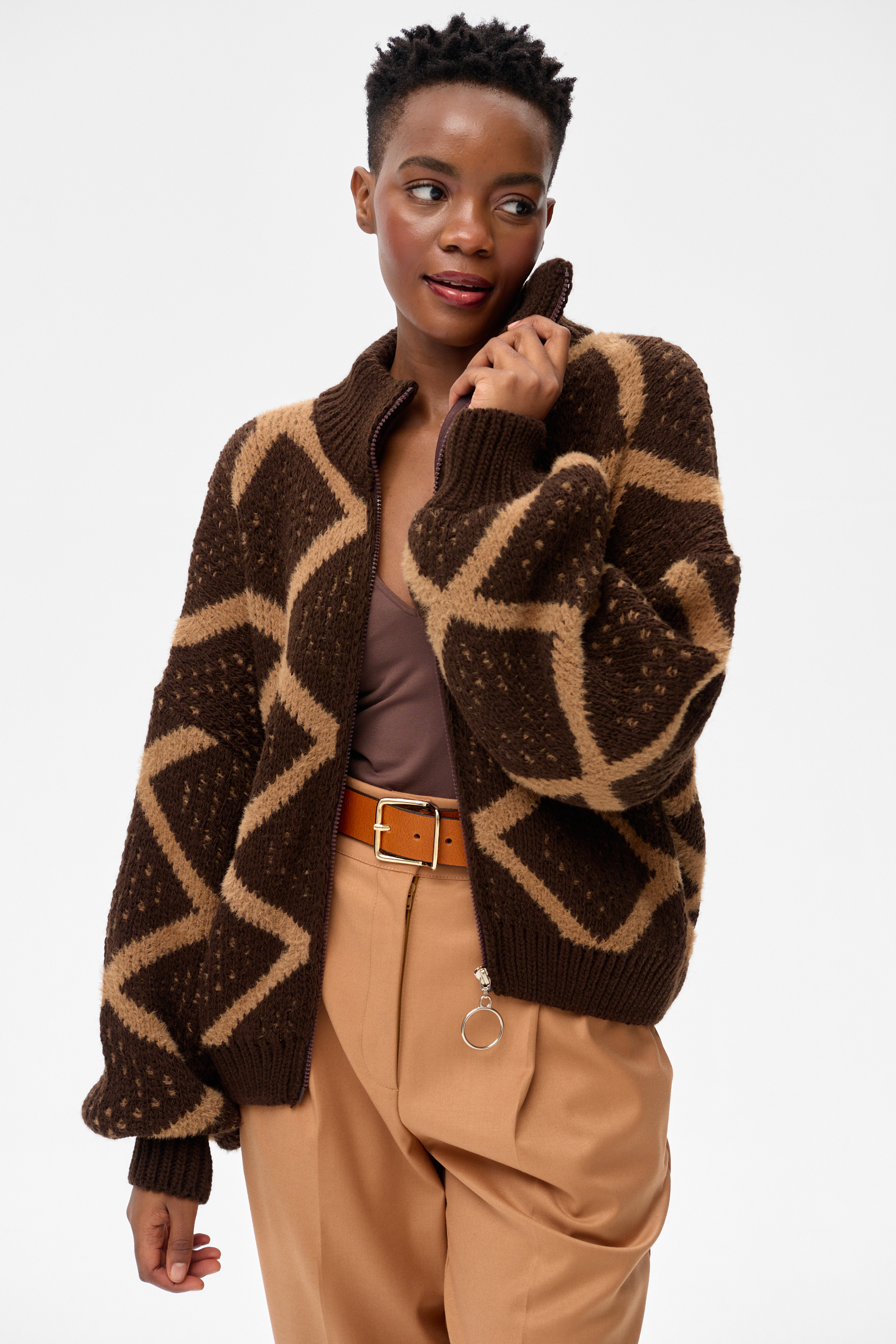 Nie, to nie jest bomberka. To polski produkt dziewiarski, inspirowany tym właśnie fasonem kurtki. I takich, dokładnie przez nas przemyślanych, detali, które dodają temu swetrowi wyjątkowego uroku, jest w tym modelu więcej. Jego splot jest trójwymiarowy. Ale spokojnie - nie potrzebujesz specjalnych okularów, żeby podziwiać go w pełnej krasie. I nie chwaląc się (albo może trochę) - do jego produkcji użyłyśmy autorskiej mieszanki kilku przędz. Jedna z nich odpowiedzialna jest za jego przemiły w dotyku charakter, ze względu na zawarty w niej delikatny włosek. No i co tu dużo mówić - jeśli brakuje Ci obecnie obiektów lub osób do przytulania, to proponujemy ten model jako tymczasowy substytut. W końcu jest to niecodzienny projekt, przeznaczony do zadań specjalnych. A jeśli jedno z nich wykracza poza modowe ramy, to jesteśmy jak najbardziej na tak.