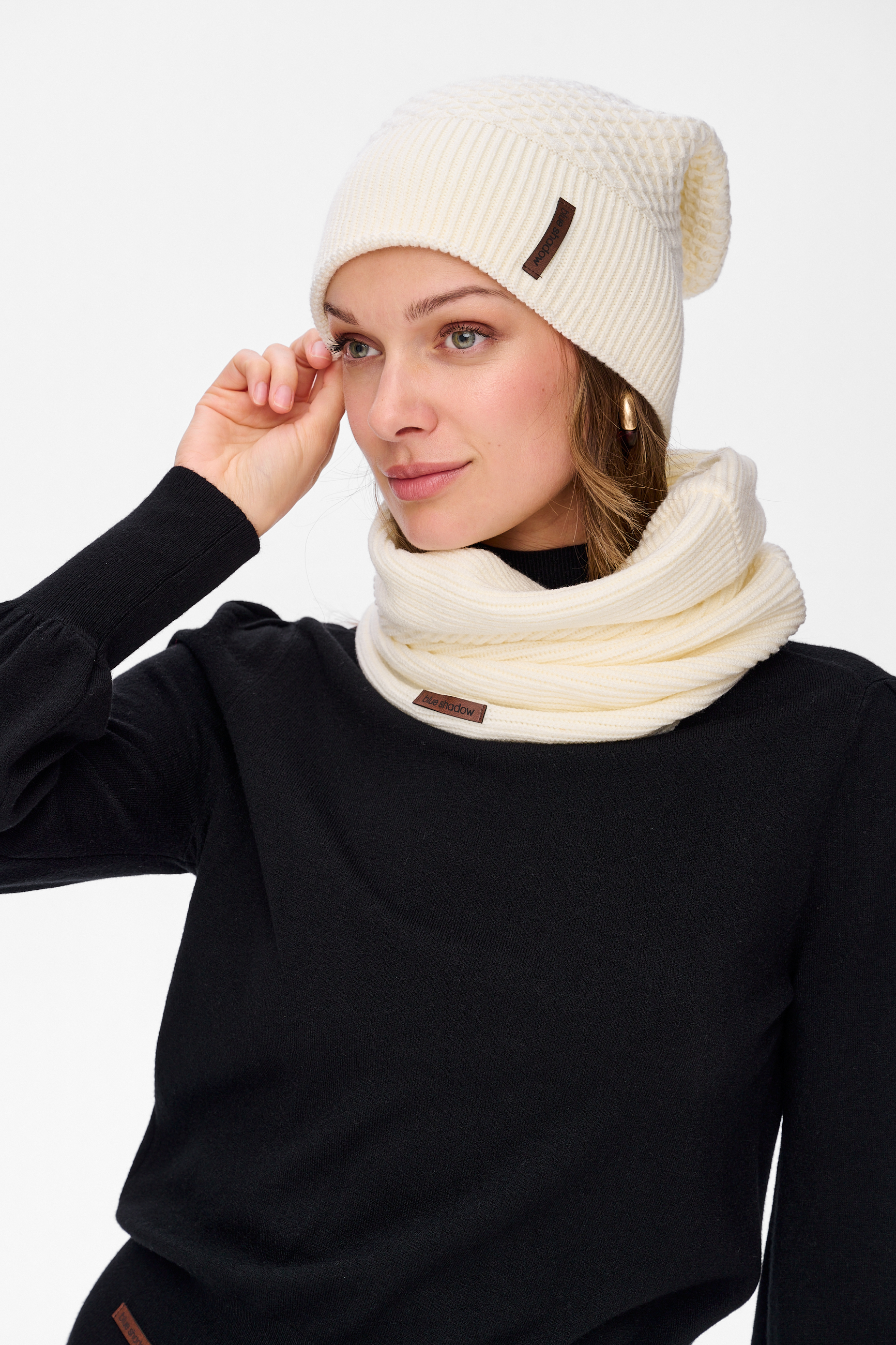 Komin damski o prostym fasonie który doskonale sprawdzi się jako uzupełnienie jesienno-zimowych stylizacji.