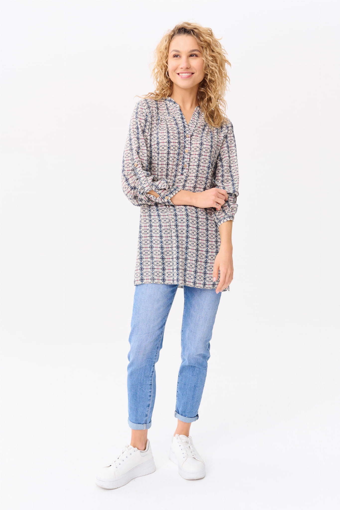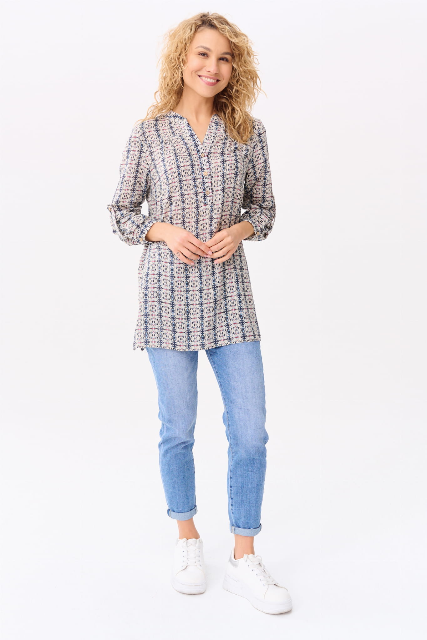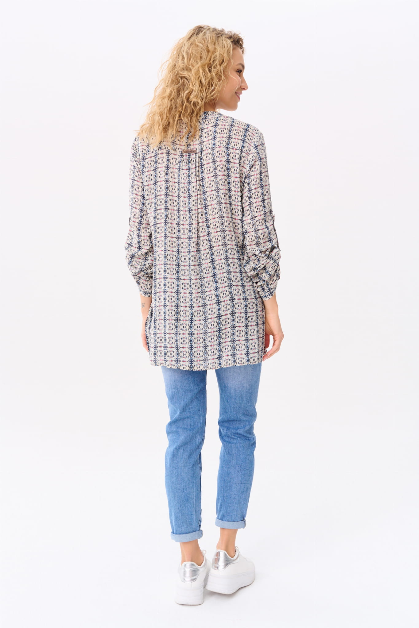 Koszula na stójce, przechodzącej w dekolt w serek; i w rozmiarach 34-50. (Z kołnierzykiem by