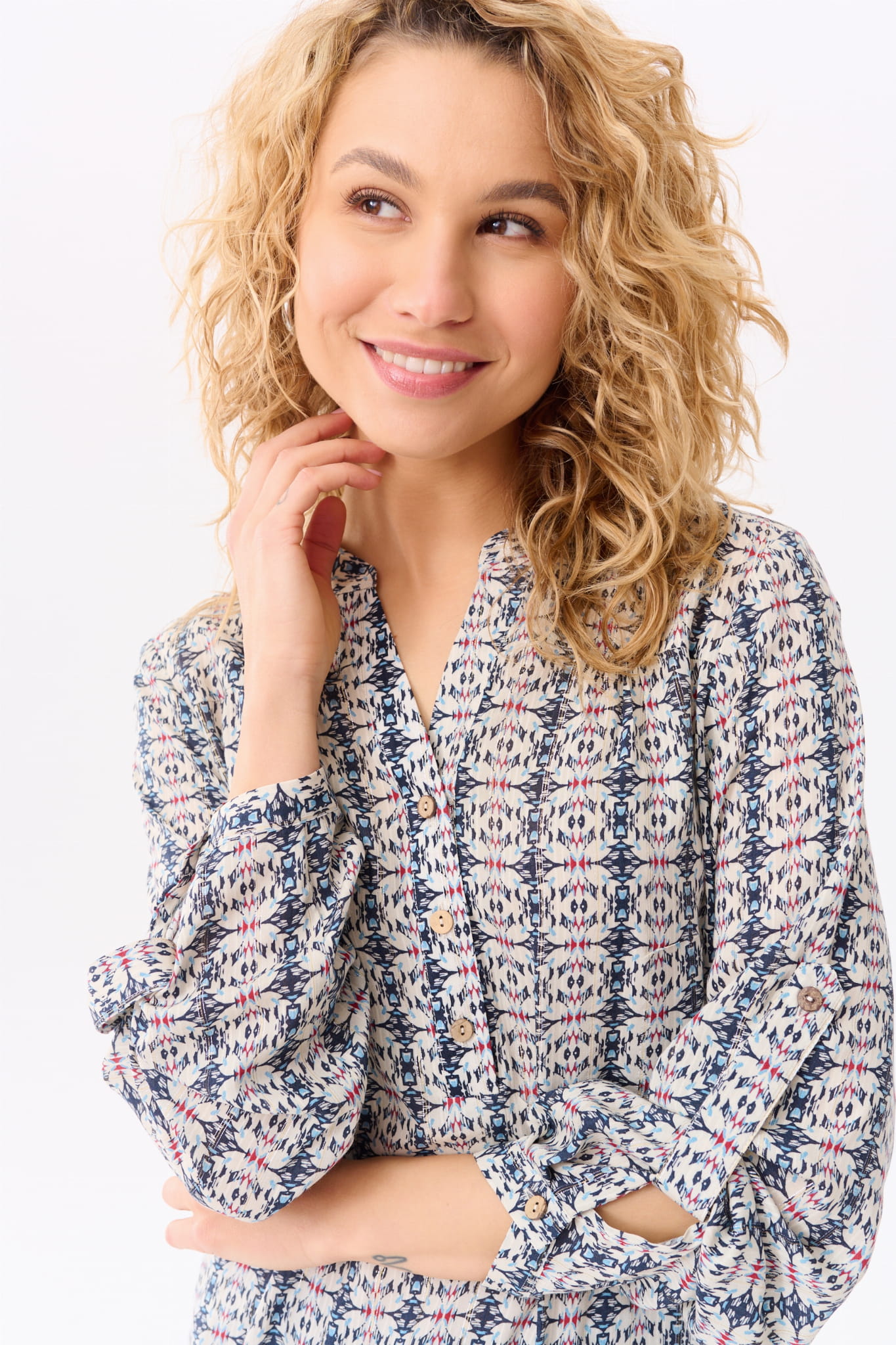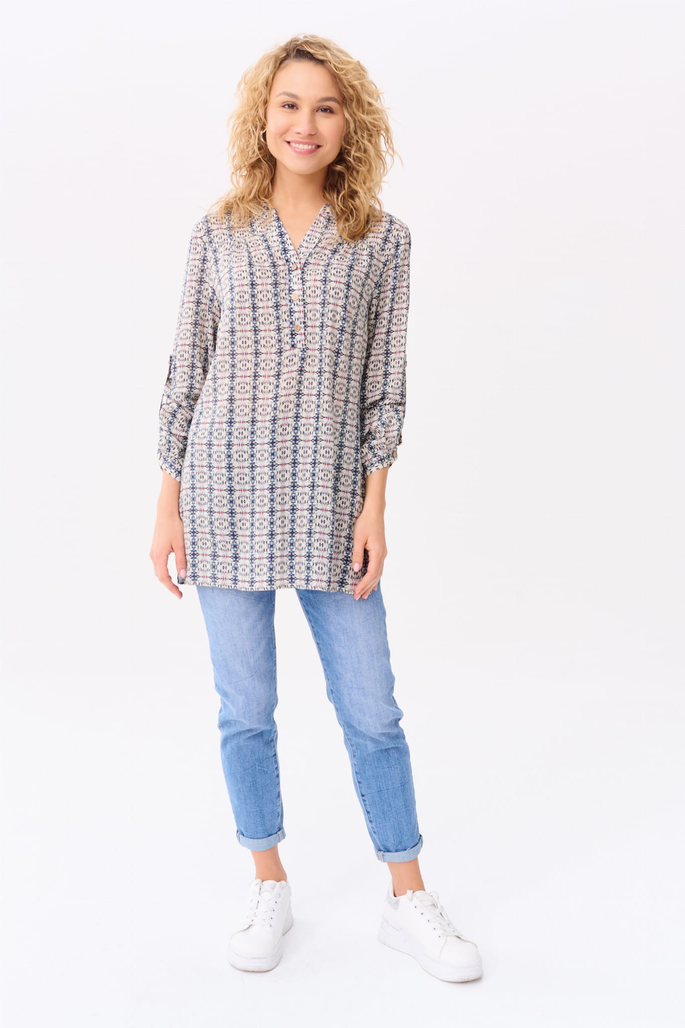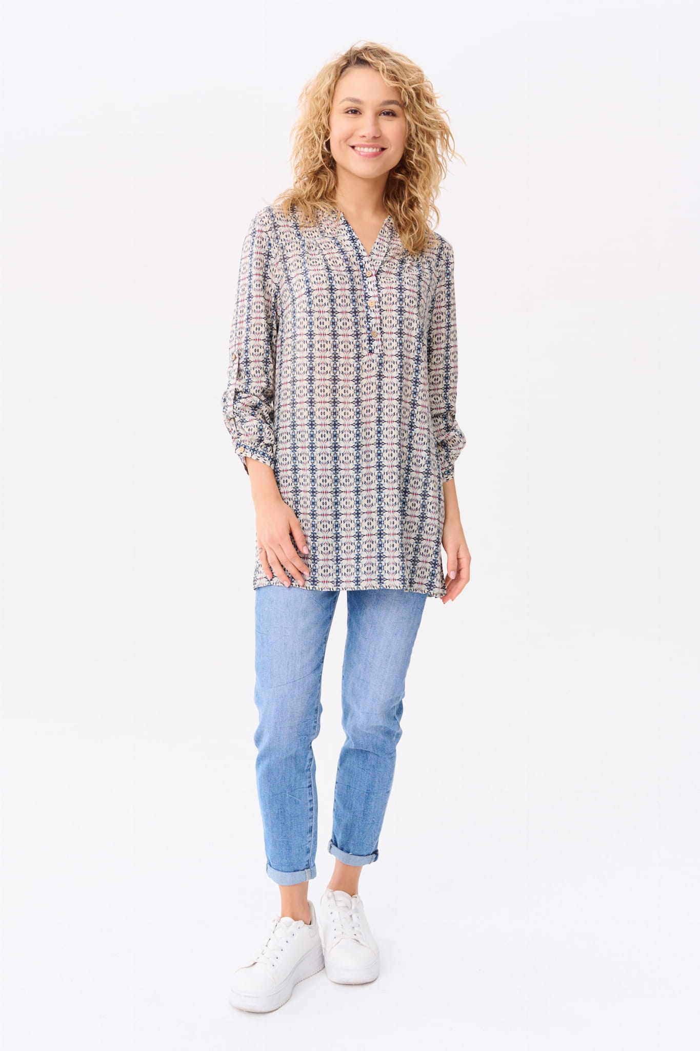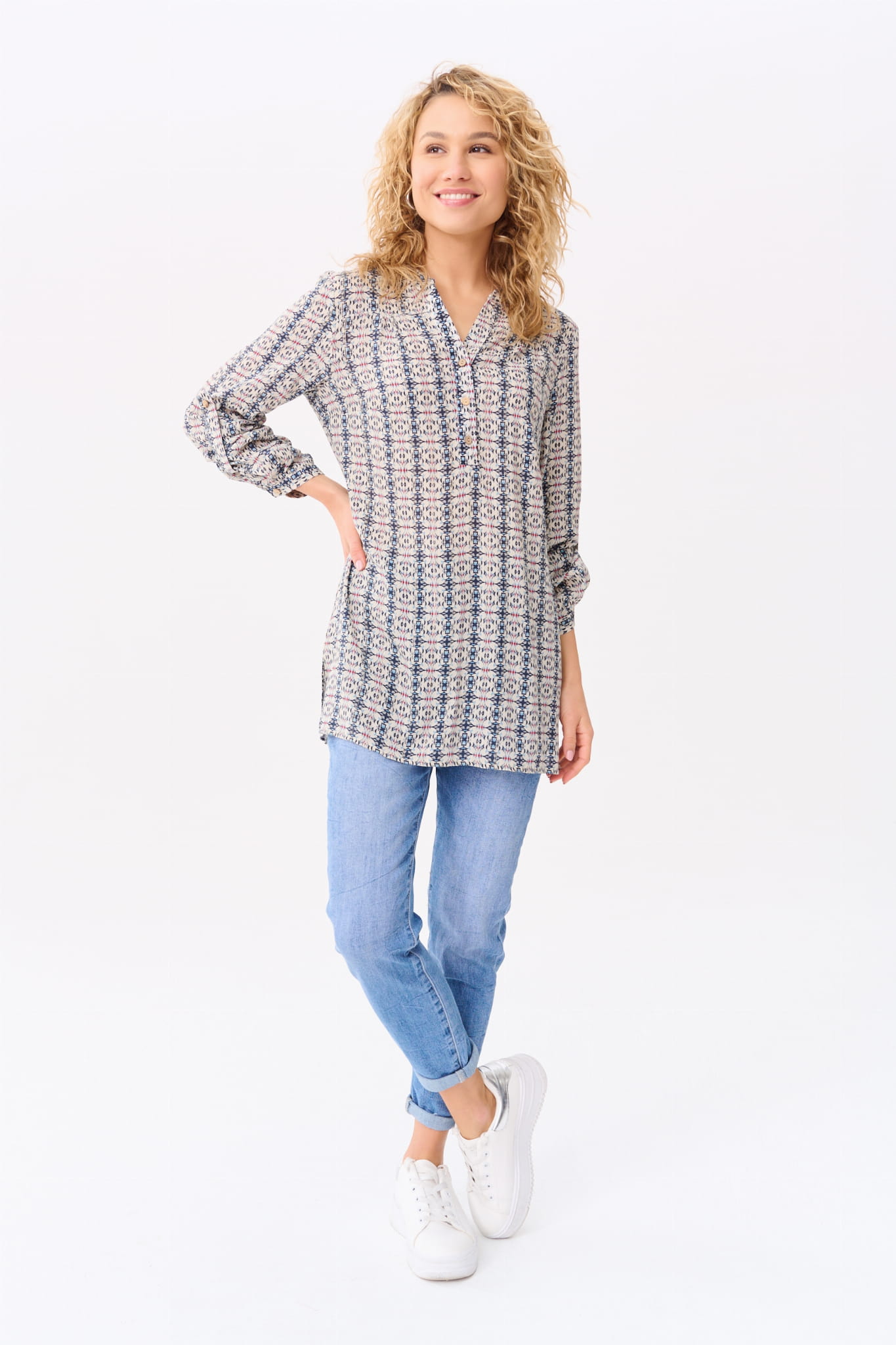 Koszula na stójce, przechodzącej w dekolt w serek; i w rozmiarach 34-50. (Z kołnierzykiem by