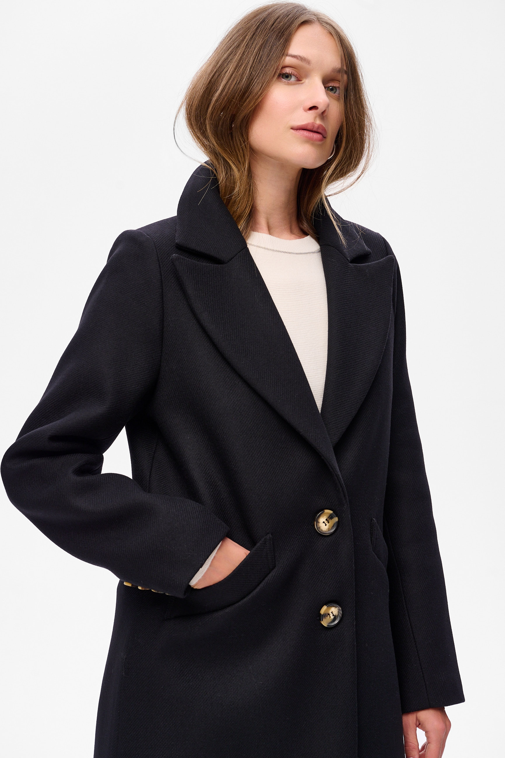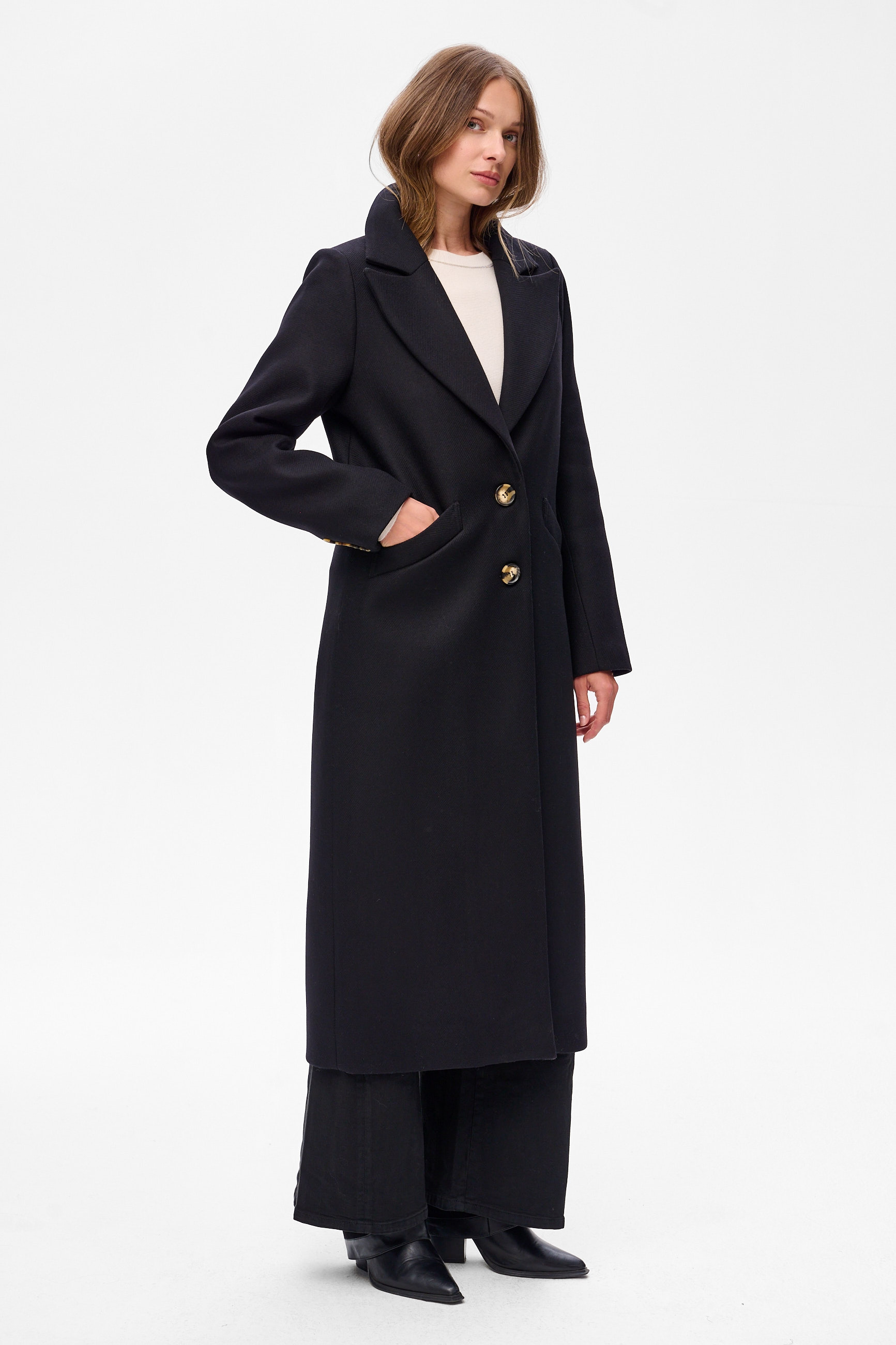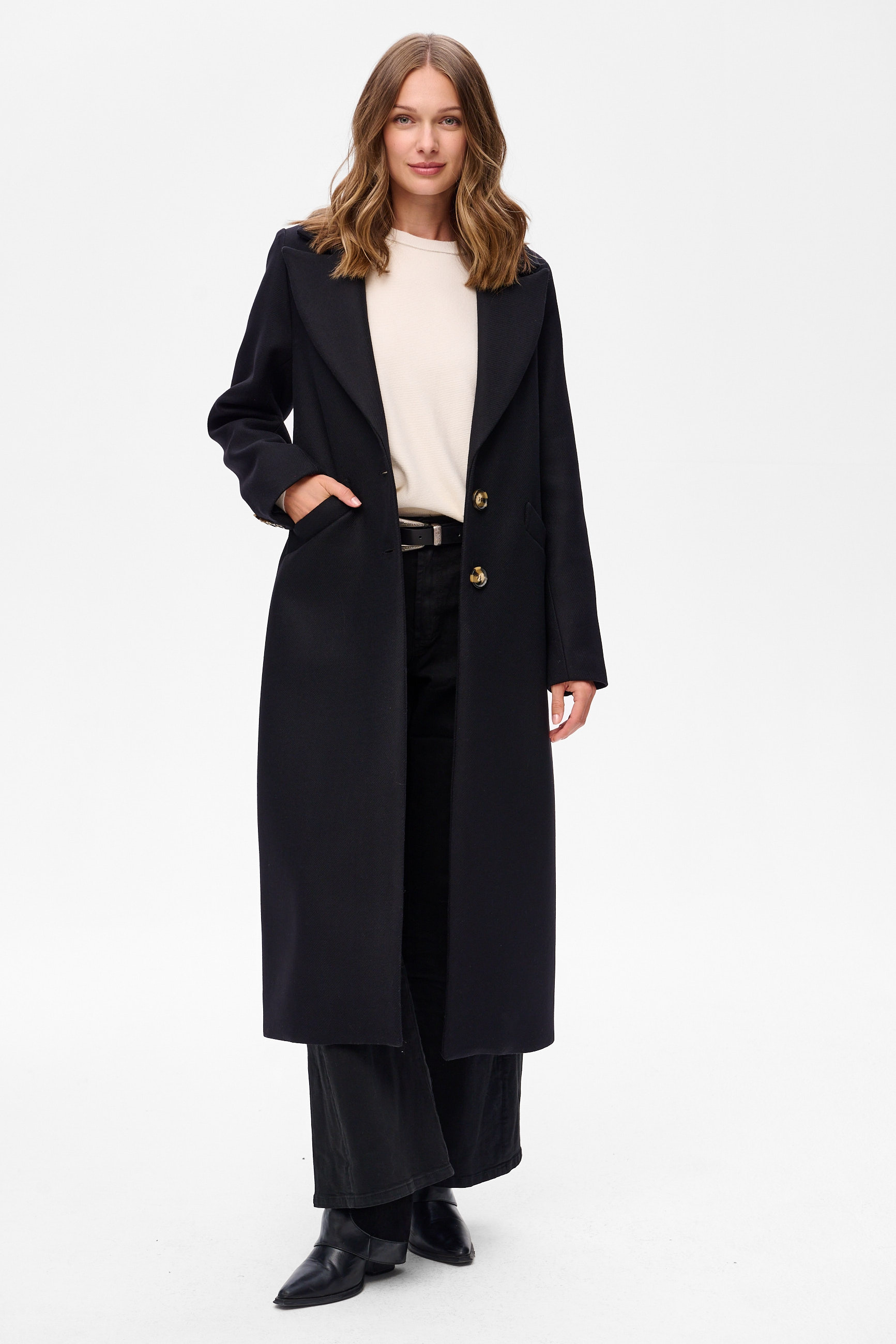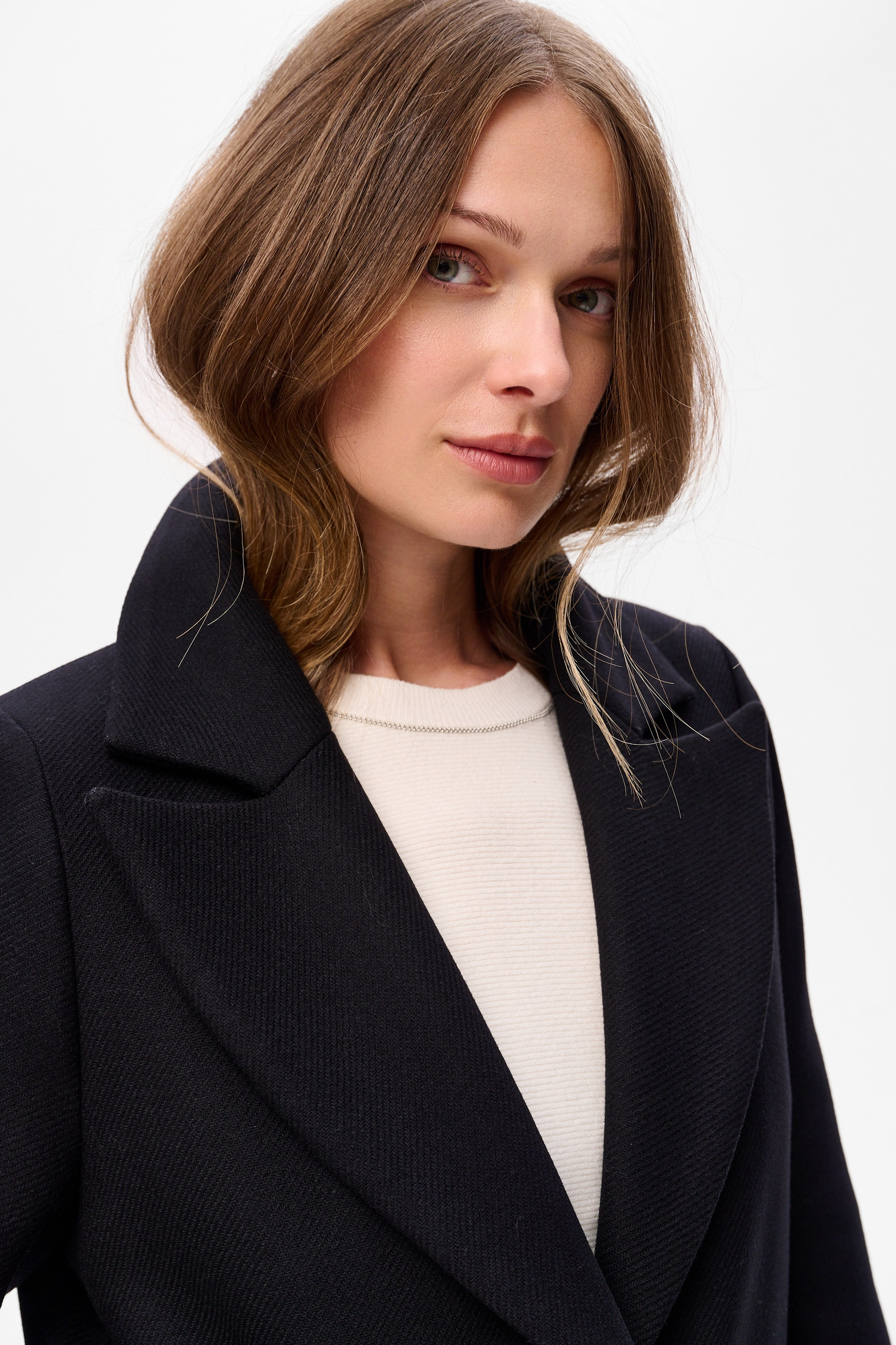 1. Komplement za elegancję - usłyszysz go, nosząc ten płaszcz do spodni HILTON i bluzki