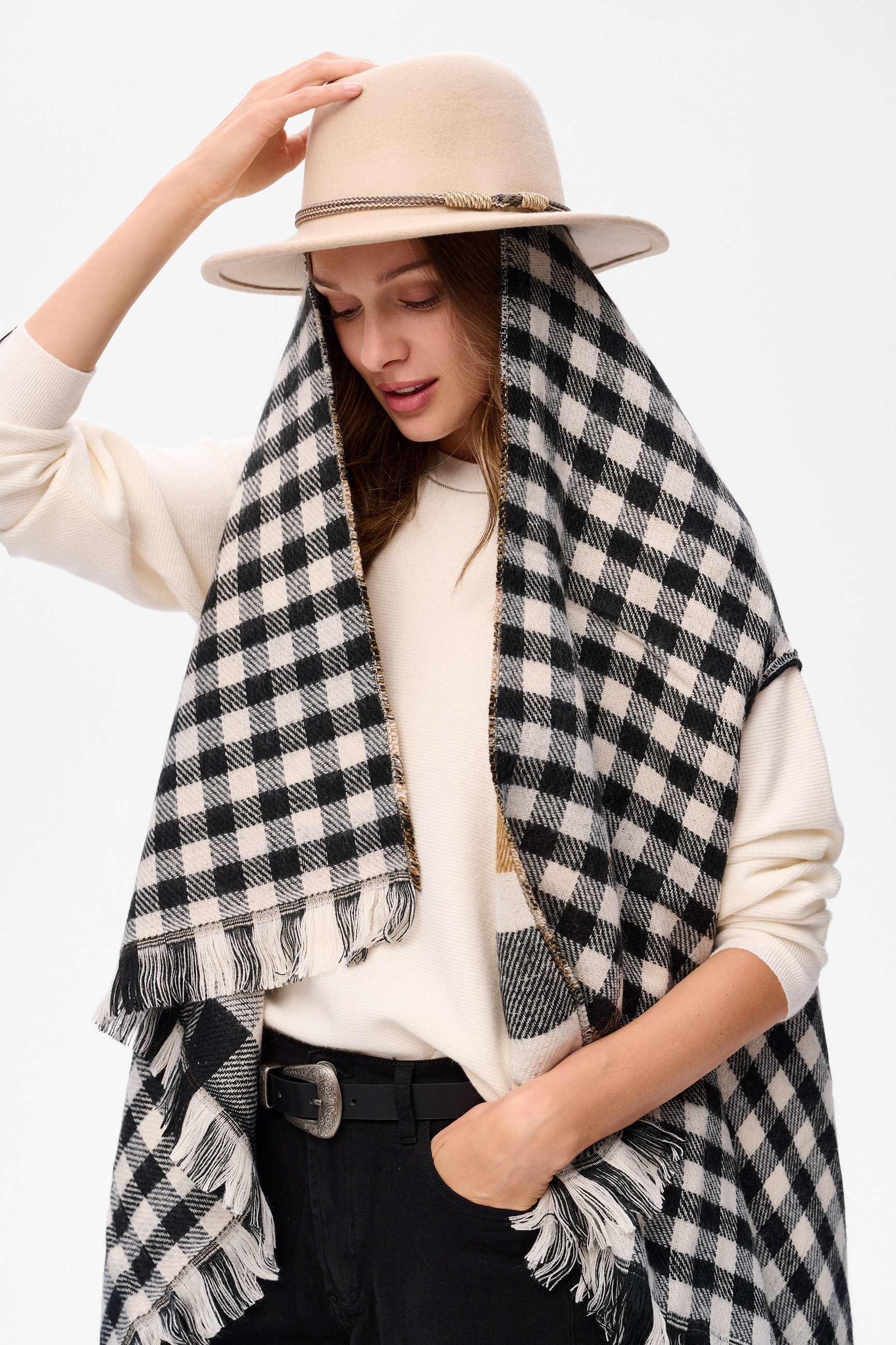 Ponczo Damskie AW24 #1 2 Krata Camel