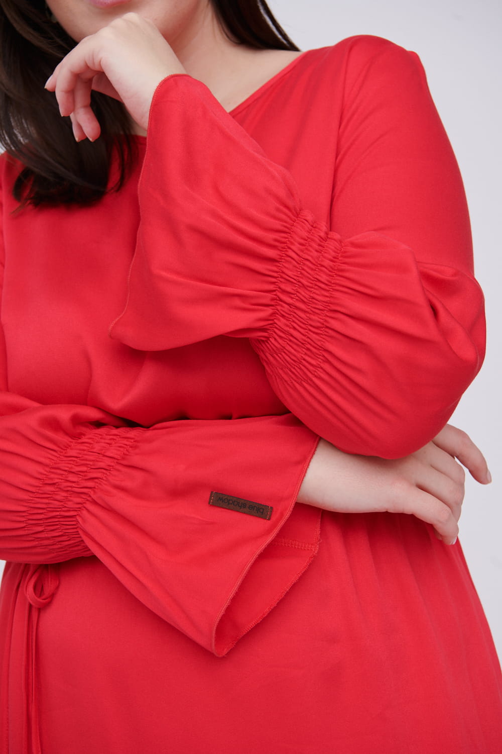 Regulacja sukienki w talii podwójnymi troczkami wpłynie też na długość sukienki w pewnym stopniu. Jeśli bowiem ściągniesz ją w pasie (jednym lub dwoma troczkami, jak lubisz), zrobi się trochę krótsza. A puszczona luźno opadnie z sylwetki i się wydłuży.