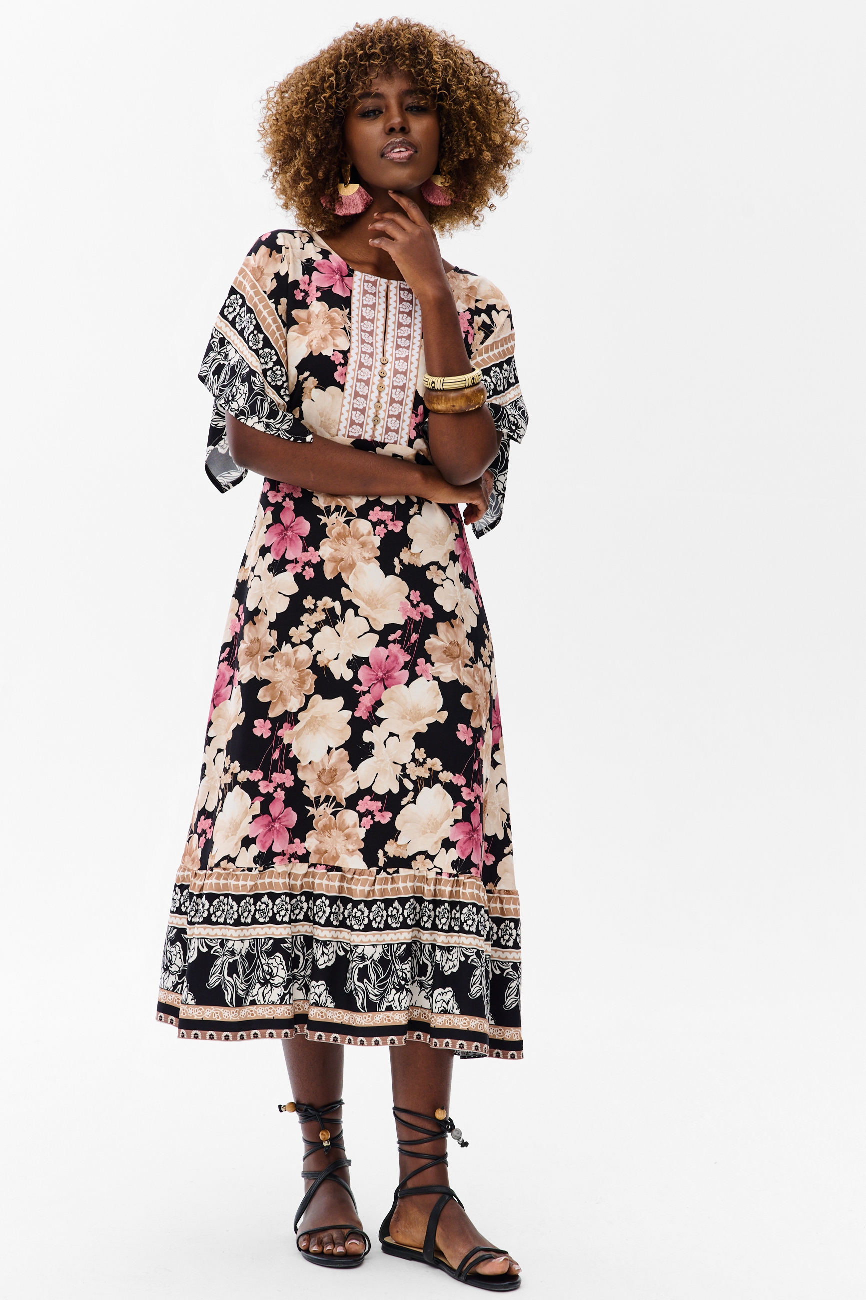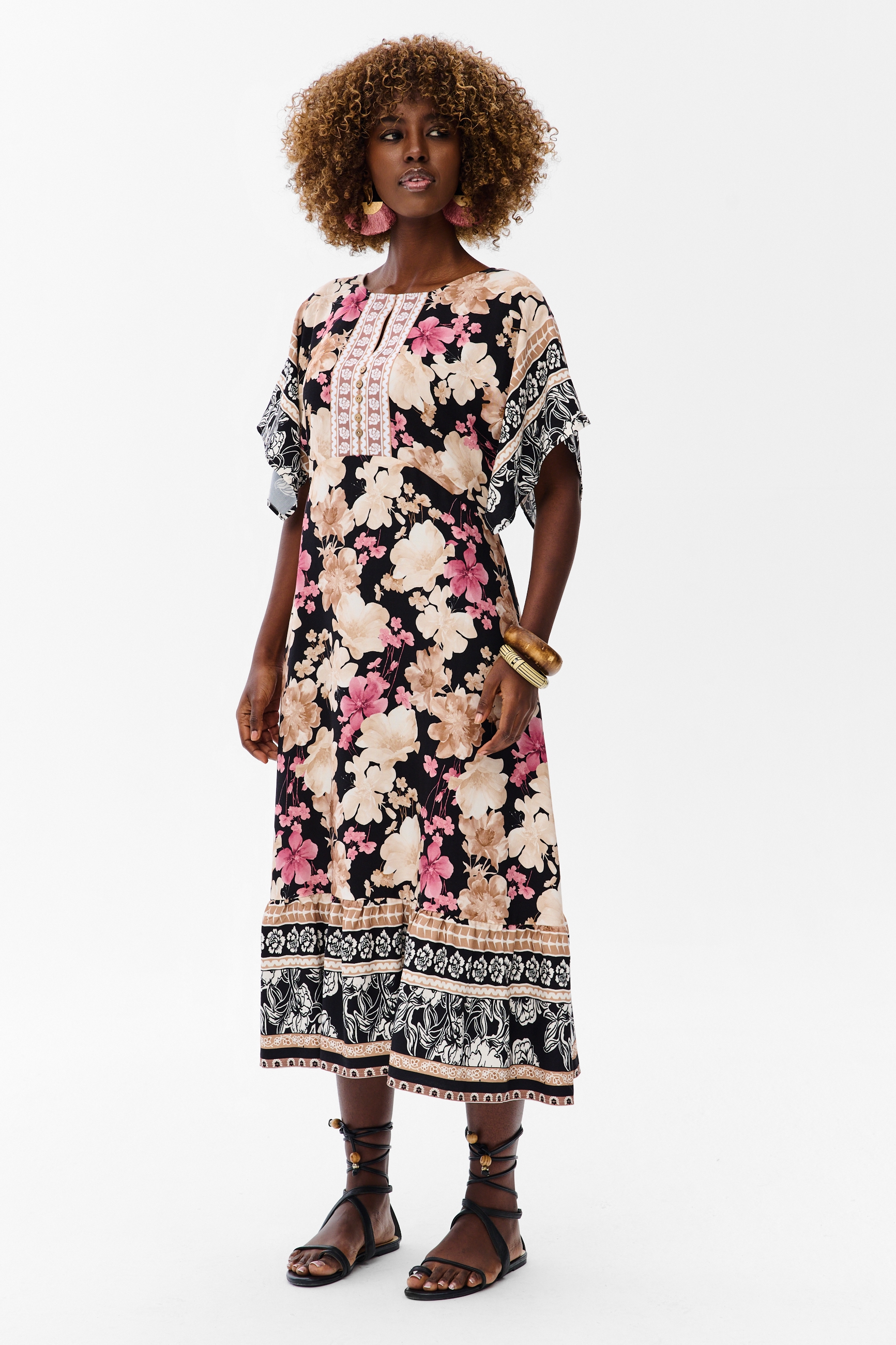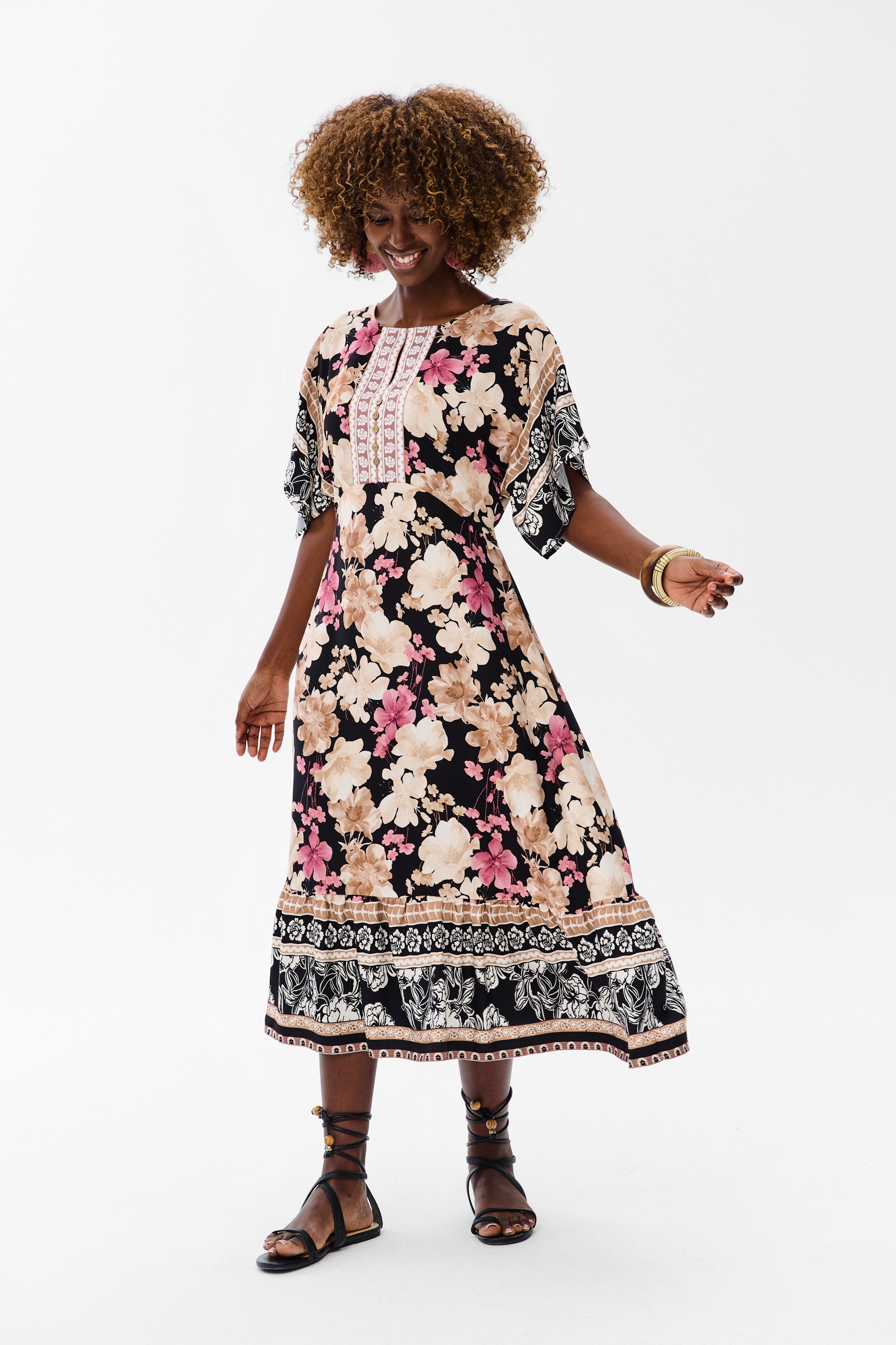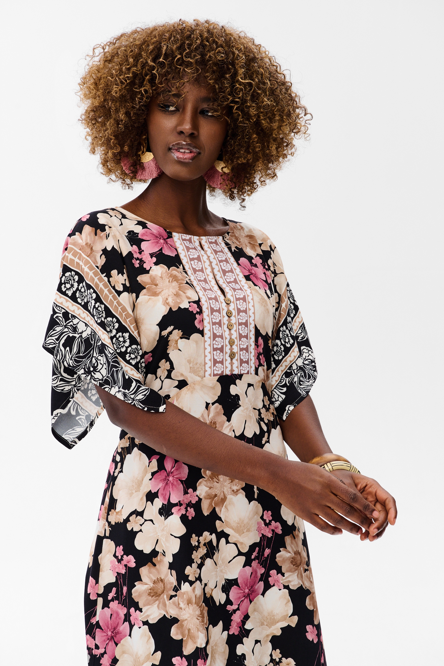 W blue shadow kochamy florystyczne klimaty. Zgadłabyś? :) A jeszcze bardziej uwielbiamy, kiedy nasze sukienki są małymi dziełami sztuki. Ten model długości midi z dekoltem typu łezka zdecydowanie ma się czym pochwalić. MARTA wykonana jest z tkaniny wiskozowej w kolorowe kwiaty. Ale oprócz tego ma ozdobny wzór w podobnej kolorystyce na przodzie, kimonowych, rozcinanych pod spodem rękawach i w dole sukienki. Do tego dobrałyśmy jej naturalne guziki kokoski. Więc jeśli i Ty jesteś fanką florystyki, to zamiast nabycia bukietu, który niestety kiedyś zwiędnie, spraw sama sobie prezent w postaci tego modelu.