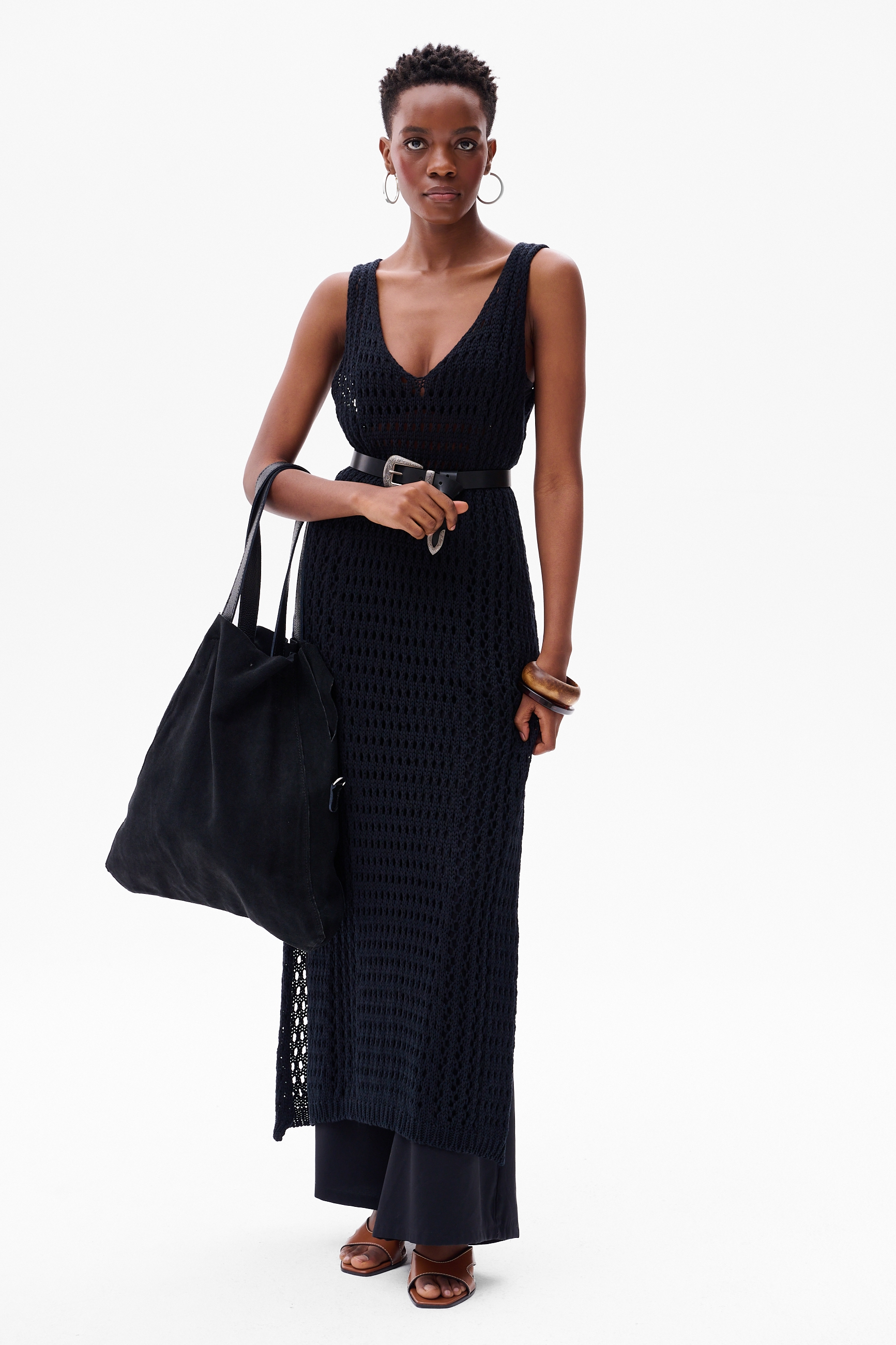 Duża torba shoper bez zapięcia, szersza u podstawy.