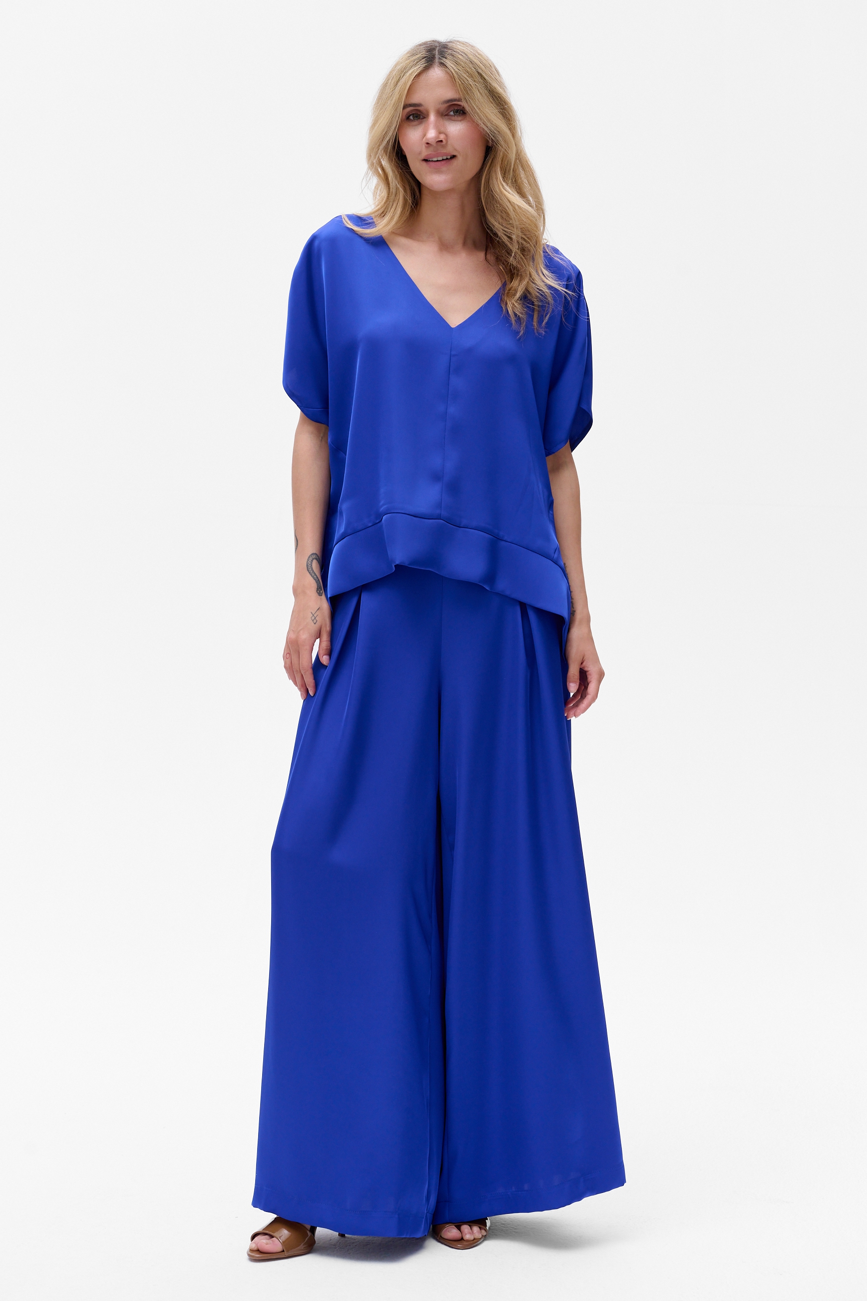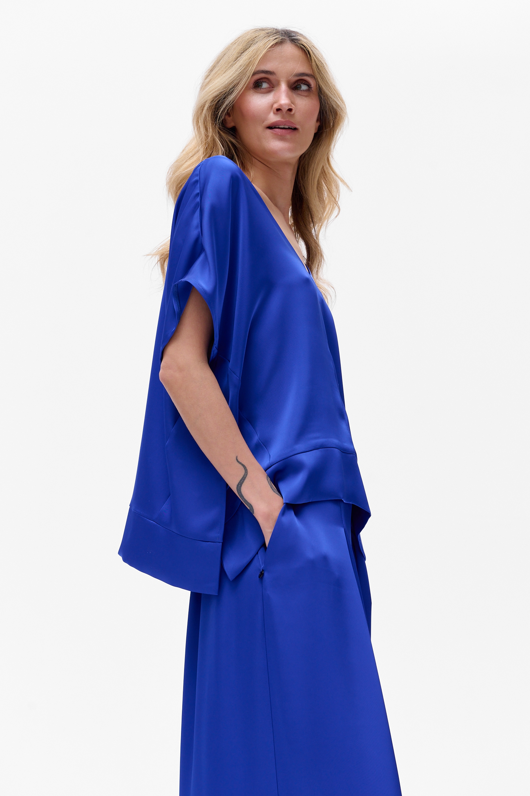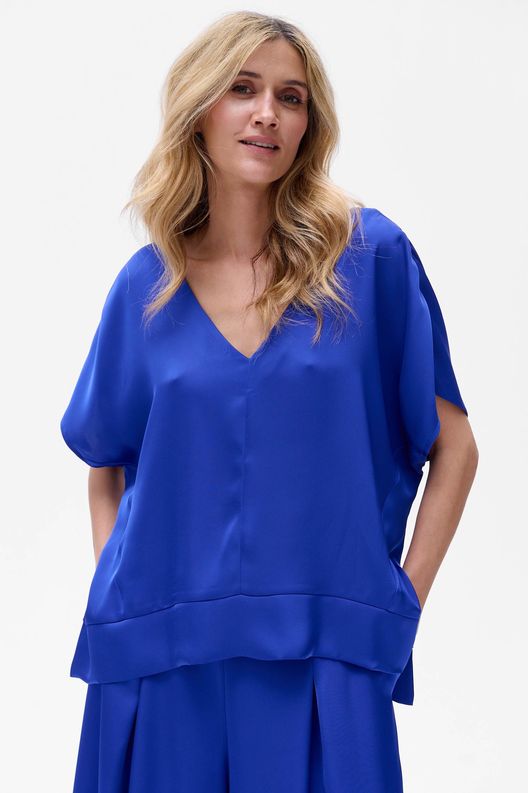 W CYGARO jest taki ciekawy techniczny zabieg. A mianowicie po bokach, a także w tej dolnej, grubszej plisie, są rozcięcia, które mają dwa zadania. Po pierwsze, nadają kształtu bluzce i utrzymują jej fason. A po drugie, wysmuklają sylwetkę. Żebyś przypadkiem nie wątpiła, że umieściłyśmy je tam celowo ;)