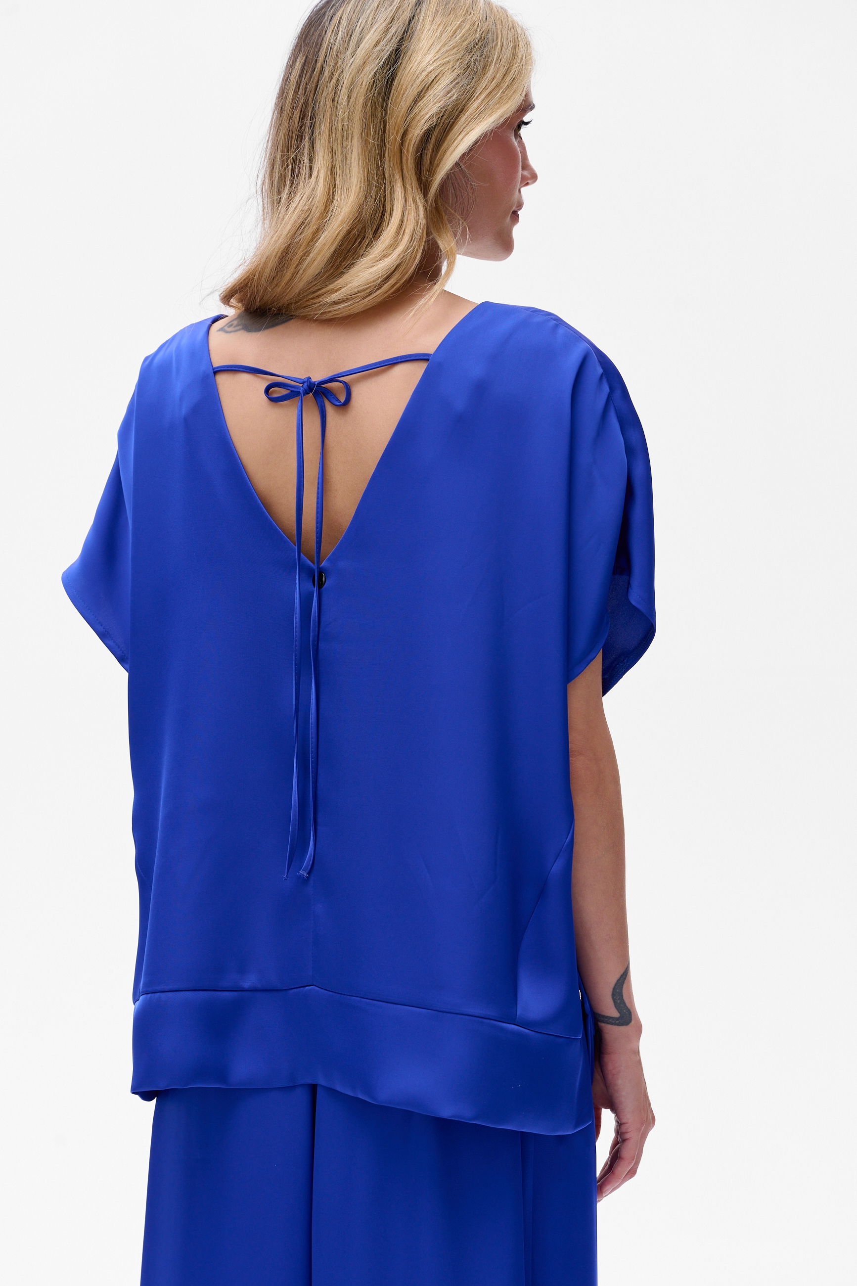 W tej bluzce nie mogłyśmy odmówić udziału szlachetnemu poliestrowi z satynowym wykończeniem.