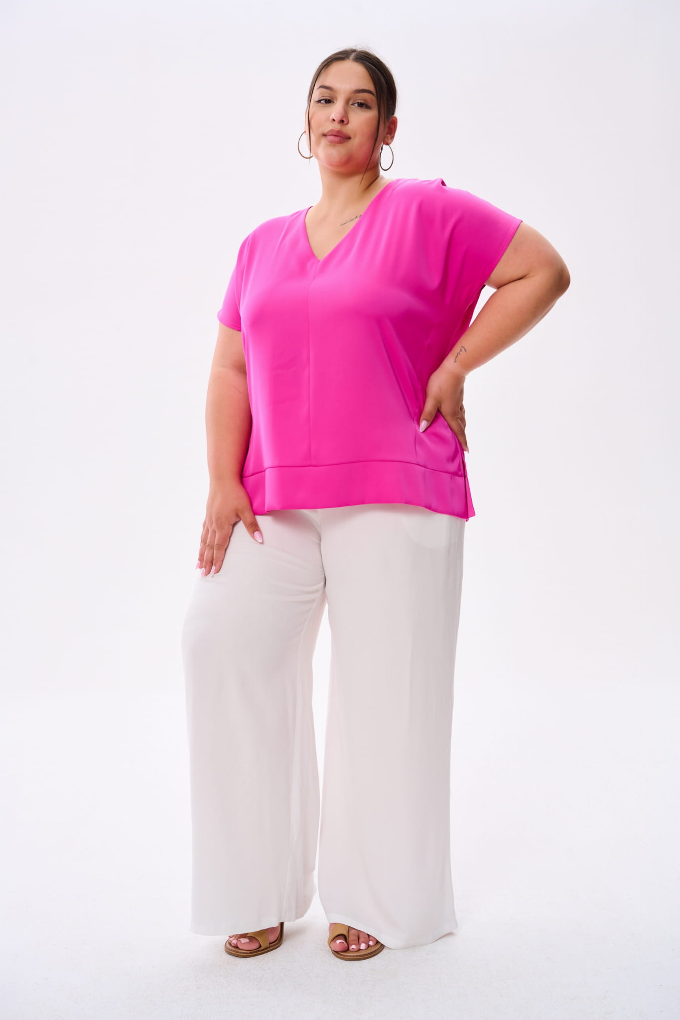 W CYGARO jest taki ciekawy techniczny zabieg. A mianowicie po bokach, a także w tej dolnej, grubszej plisie, są rozcięcia, które mają dwa zadania. Po pierwsze, nadają kształtu bluzce i utrzymują jej fason. A po drugie, wysmuklają sylwetkę. Żebyś przypadkiem nie wątpiła, że umieściłyśmy je tam celowo ;)
