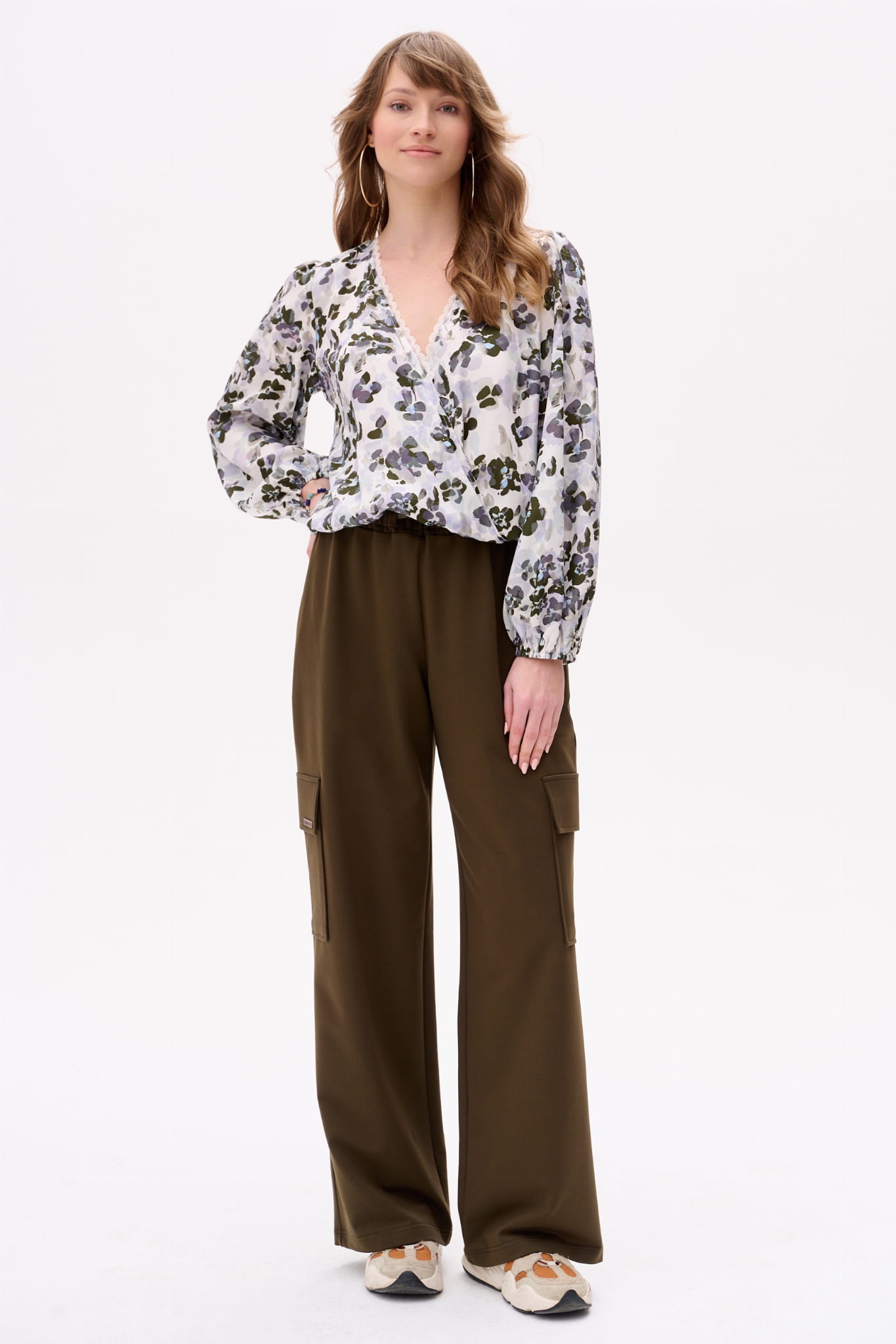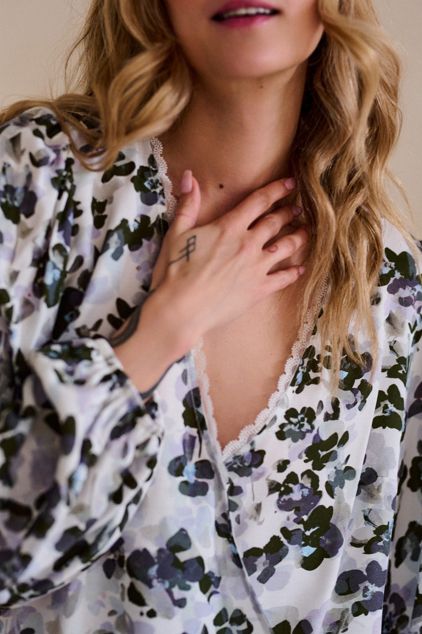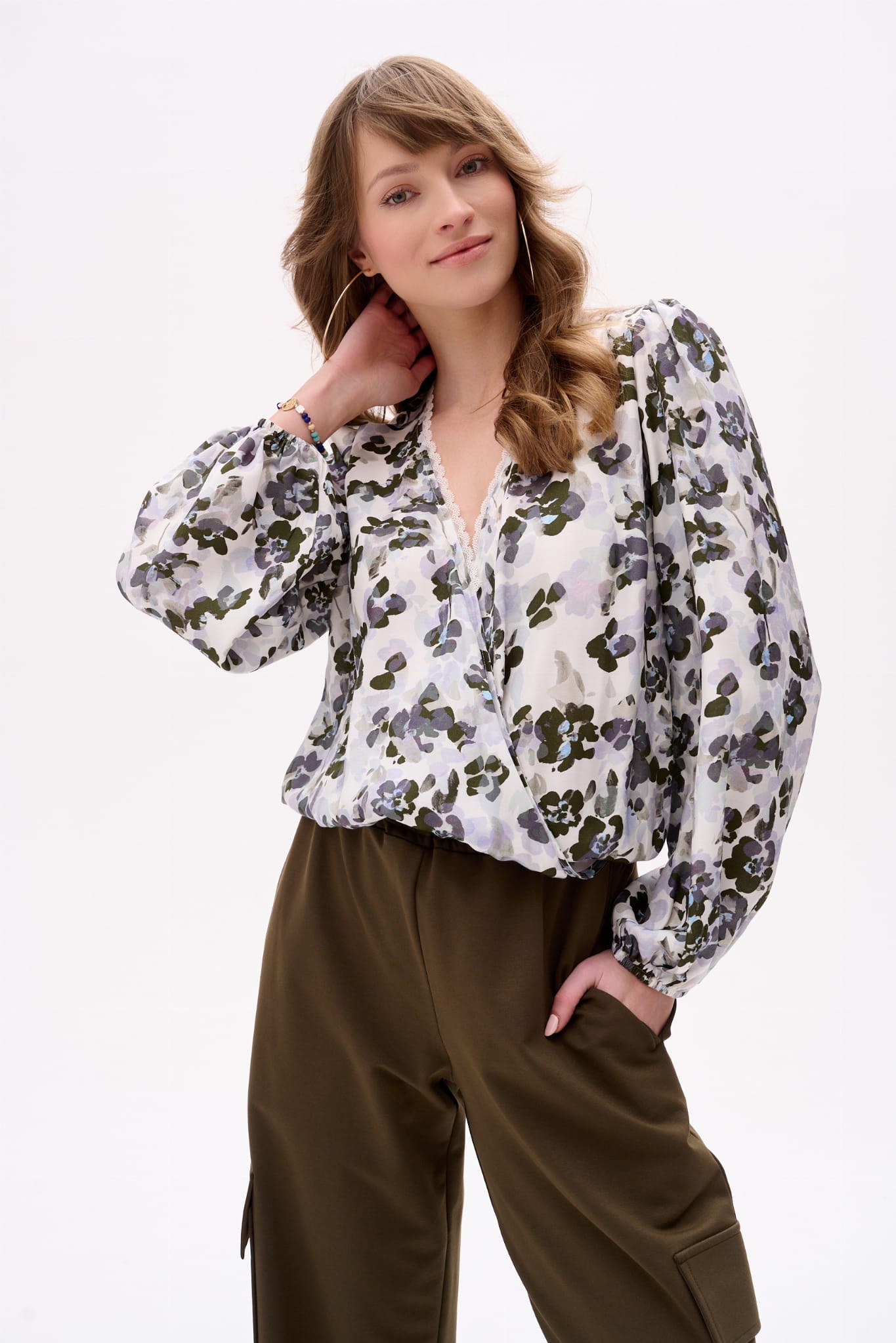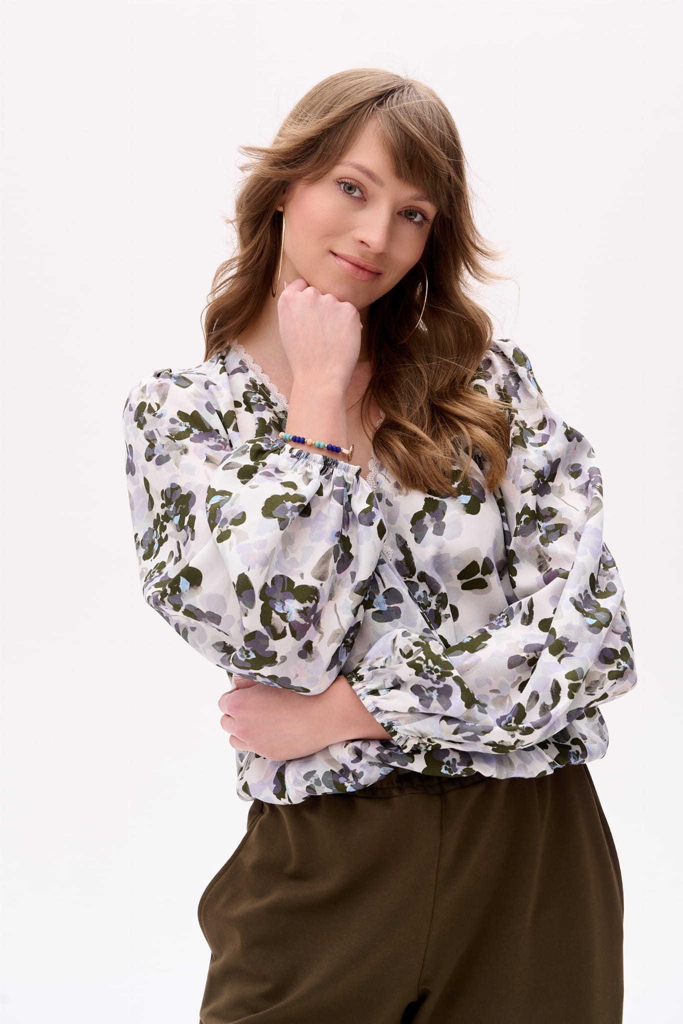 I jak tu nie kochać bluzek zakończonych gumką? W ten sposób fajnie się na dole układają, a nawet… bluzują hehe Model DARCY ma ponadto dekolt w serek i bufkowe rękawy, także zakończone gumeczką, ułatwiającą ich podciąganie do góry w razie potrzeby. Uwielbiamy też tę cudną koroneczką, zdobiącą linię dekoltu. A ten oficjalny w zamyśle fason możesz mieć w trzech, niekoniecznie oficjalnych wersjach kolorystycznych: beżowej panterce, ecru oraz niebieskich moro-kwiatów.