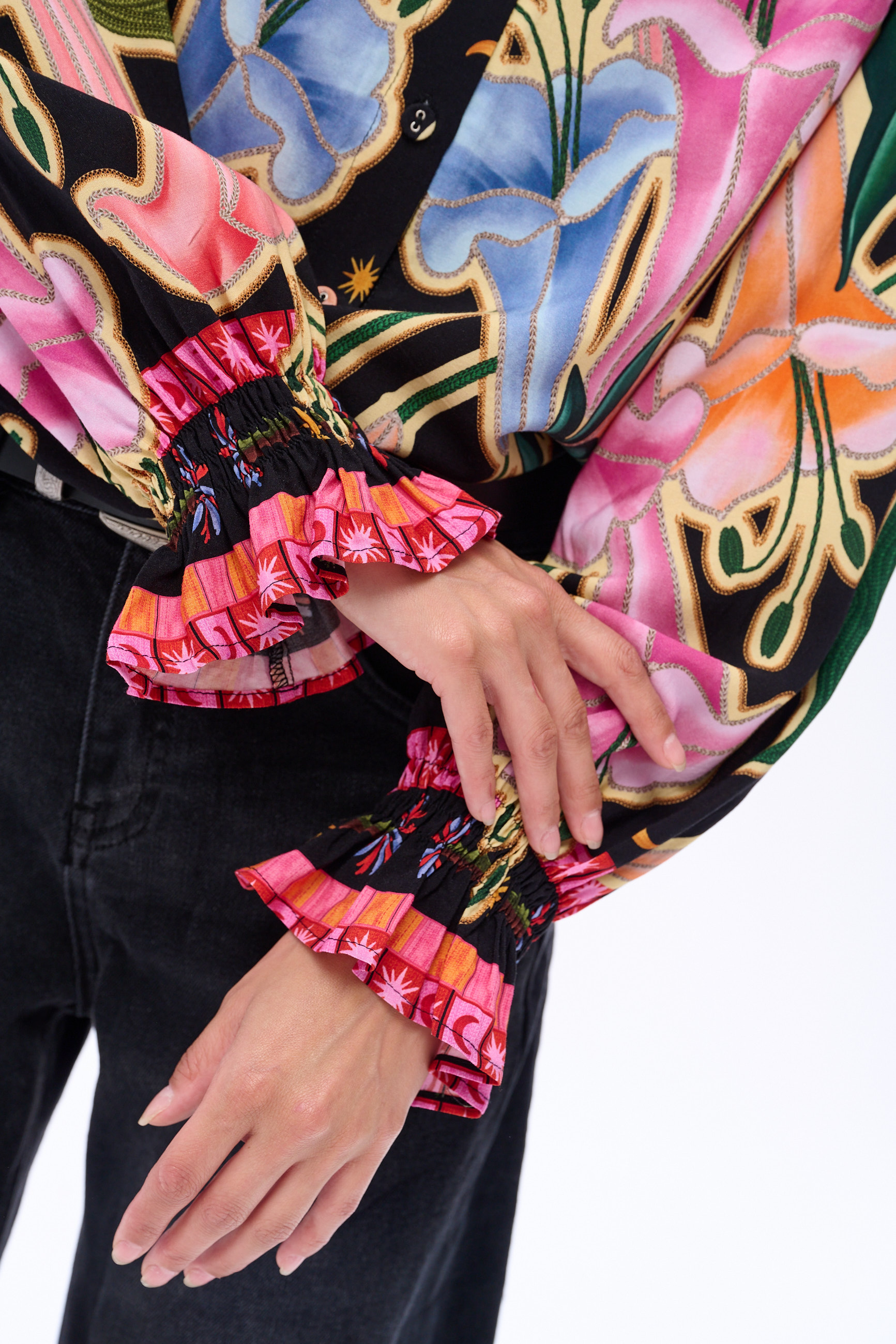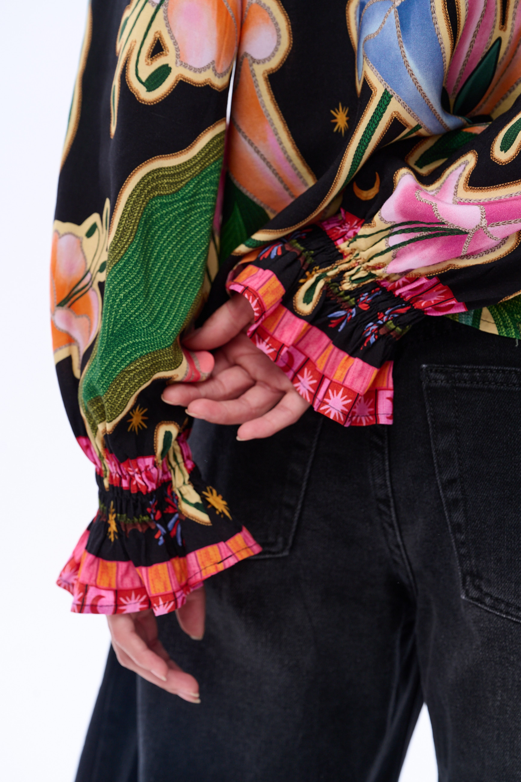 długie, zakończone falbanką