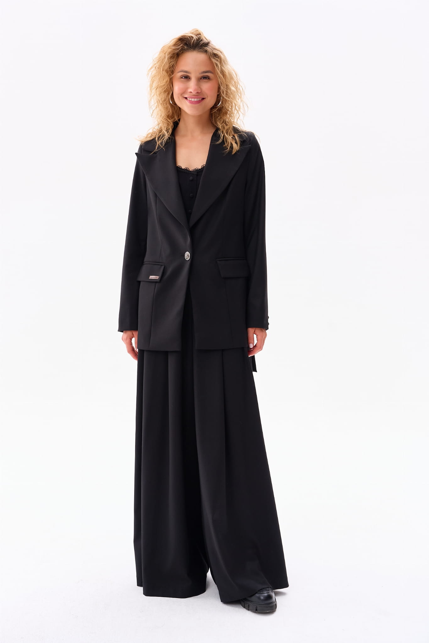 SPODNIE VIDA Inspiracja Podstawa szafy Fason Podeszłyśmy do tego modelu z szeroką perspektywą w kwestii nogawek oraz rozmiarów (34-46). Tkanina Wiskoza, poliester, i elastan weszły w ten skład bez cienia zastanowienia. Wykonanie No to lecimy z zaletami tych portków. Są zapinane na przodzie na dwa guziczki na stopce. Przód ozdabiają dwie zakładki. Mają praktyczne kieszenie. I możesz wybrać spośród trzech wersji: gładkiej czerni, drobnej, brązowej krateczki i szarego melanżu. My je bankowo będziemy mnosić tej jesieni. Nasze ulubione stylizacje 1. Wczesna jesień - pozwala jeszcze na noszenie tych spodni w wersji czarnej do koszuli SHIKEYO, beżowej kamizelki LIMA i białych trampek. 2. Jesień w pełni - bez tych kraciastych spodni, dopasowanej kurtki dżinsowej w kolorze brązowym i glanów ani rusz! 3. Późna jesień - wymaga już założenia do szarej wersji tych spodni czarnej dresowej bluzy OPO i nieprzemakalnych traperów. Tylko dla wtajemniczonych A teraz niespodzianka! Każda z wersji spodni ma korespondującą z nimi marynarkę o nazwie… VIDA! Tym samym mamy zaszczyt przedstawić Ci nasz genialny, jesienny garnitur. Koniecznie więc odwiedź marynarki na naszej stronie.