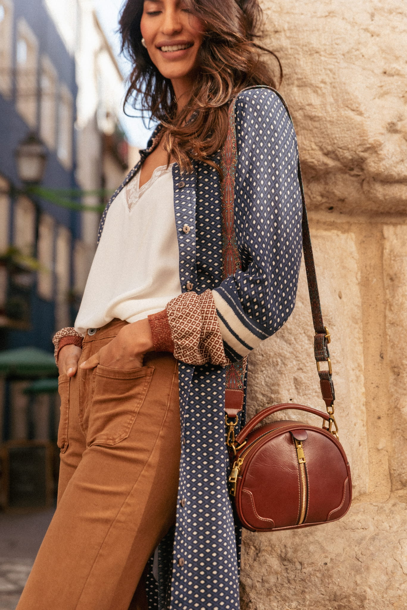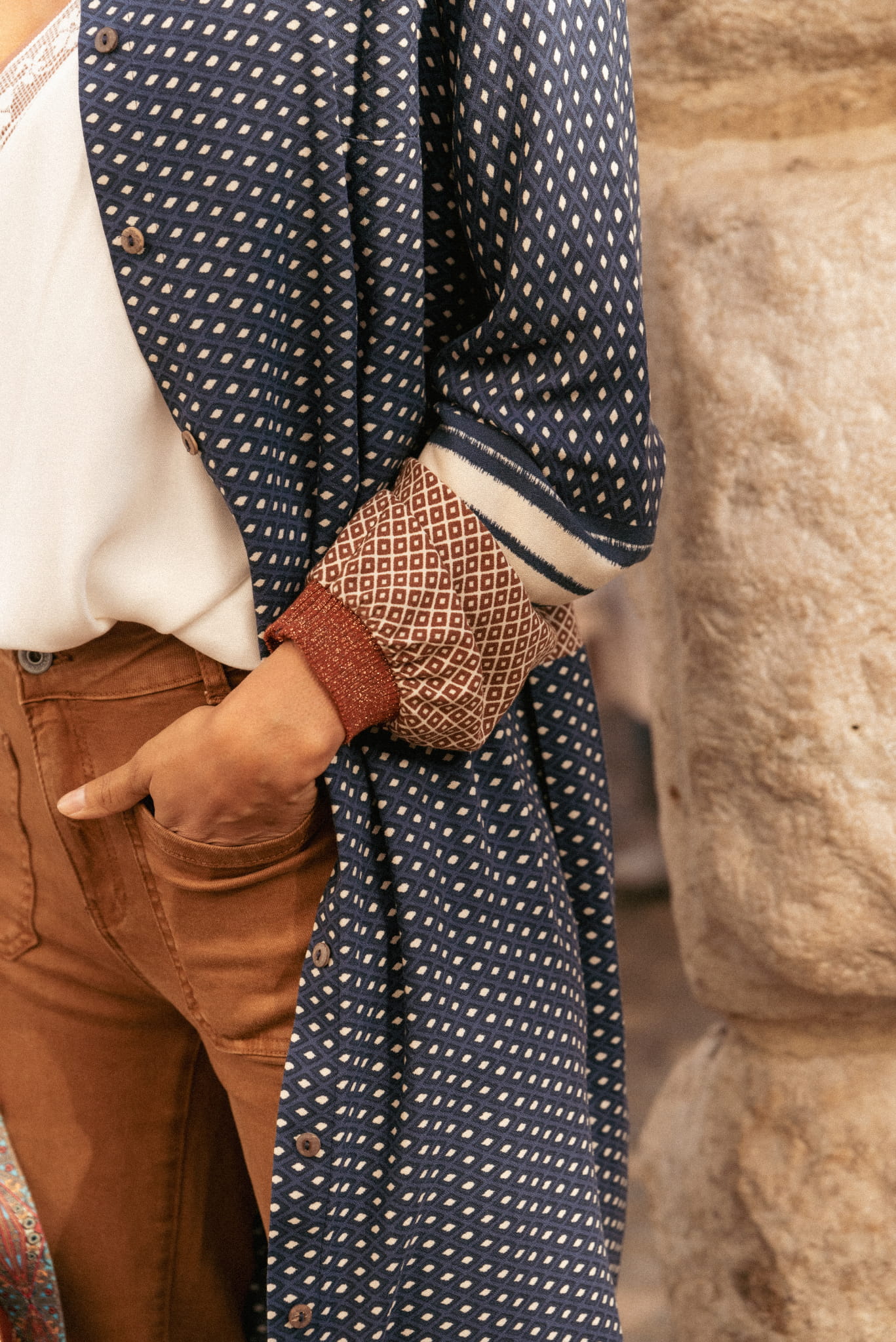 2. NIBATI NA – czyli w wersji narzutki na nasze spodnie spodnie 3D – 8047 w kolorze kamelowym oraz top BP.