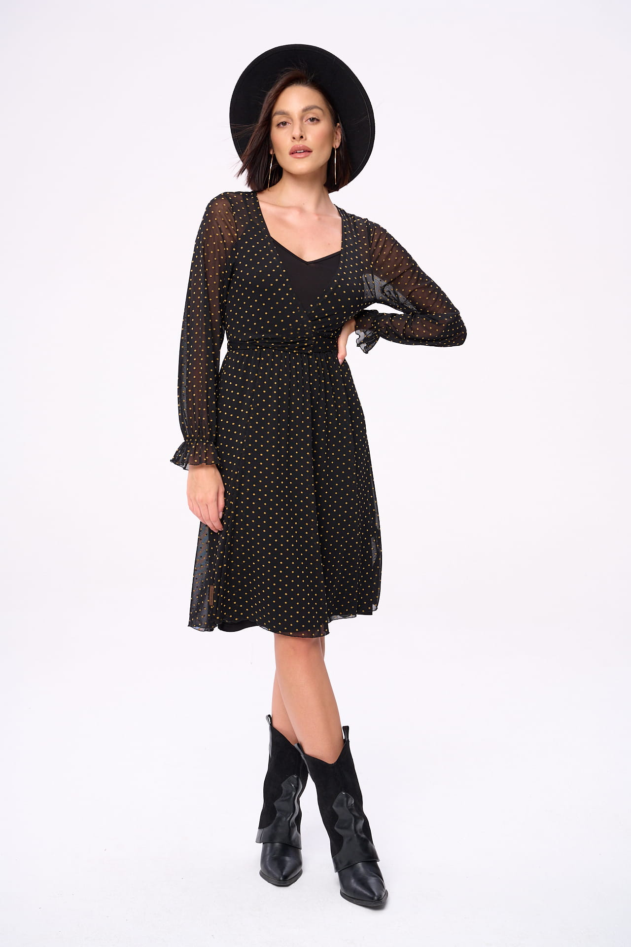 Sukienka Sindy Czarny / Groszki Ciepły Beż