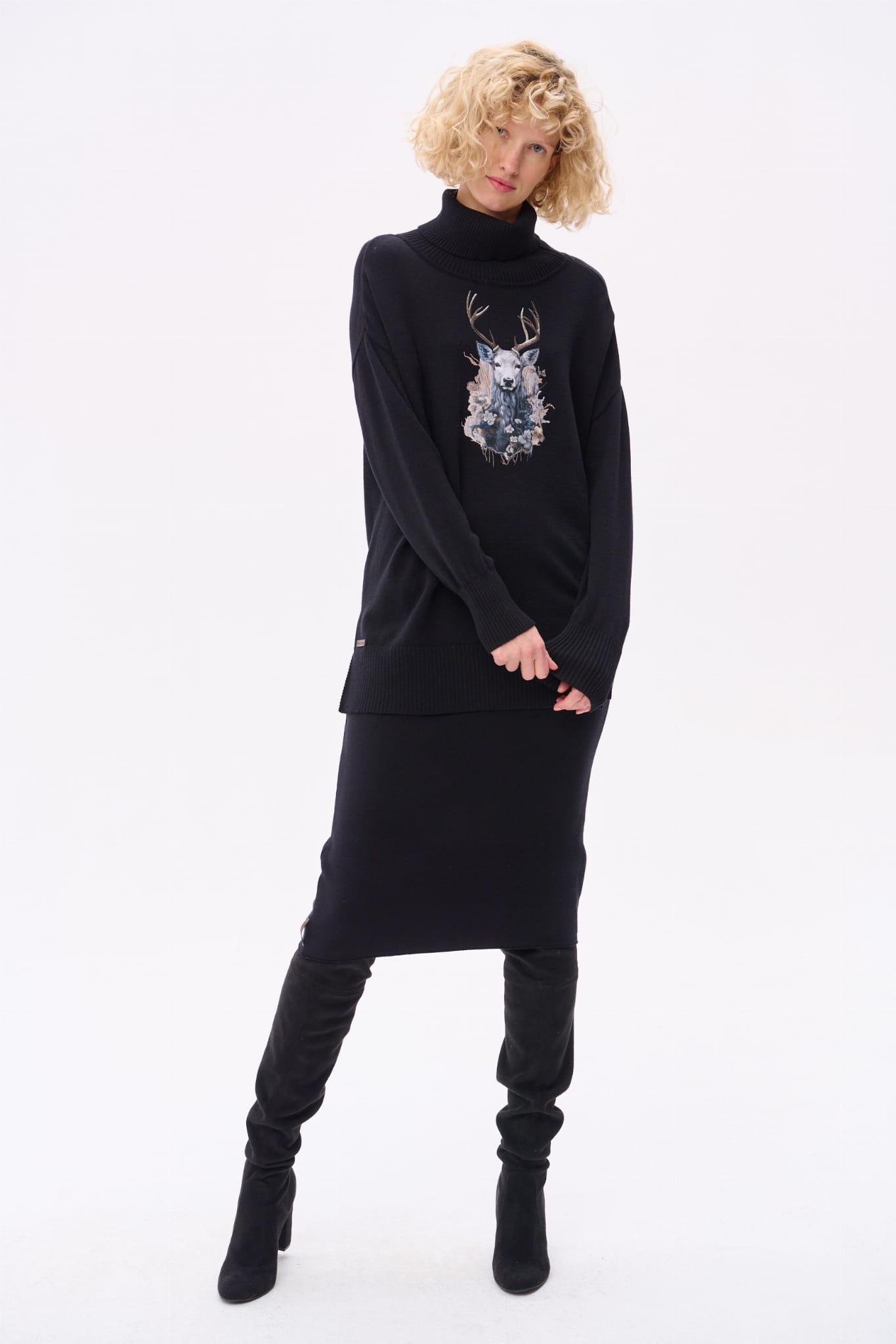 Sweter Damski Lyly Czarny / Jeleń